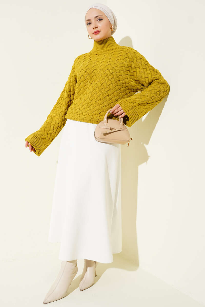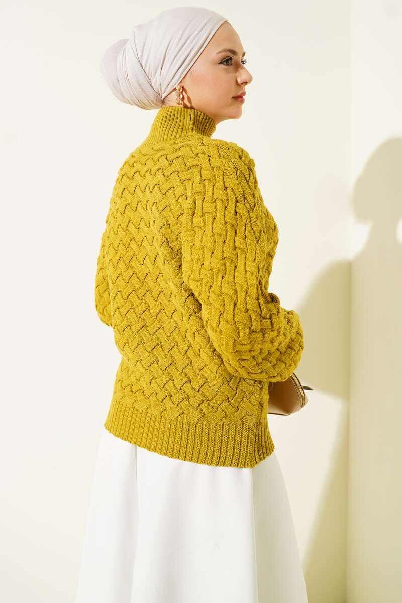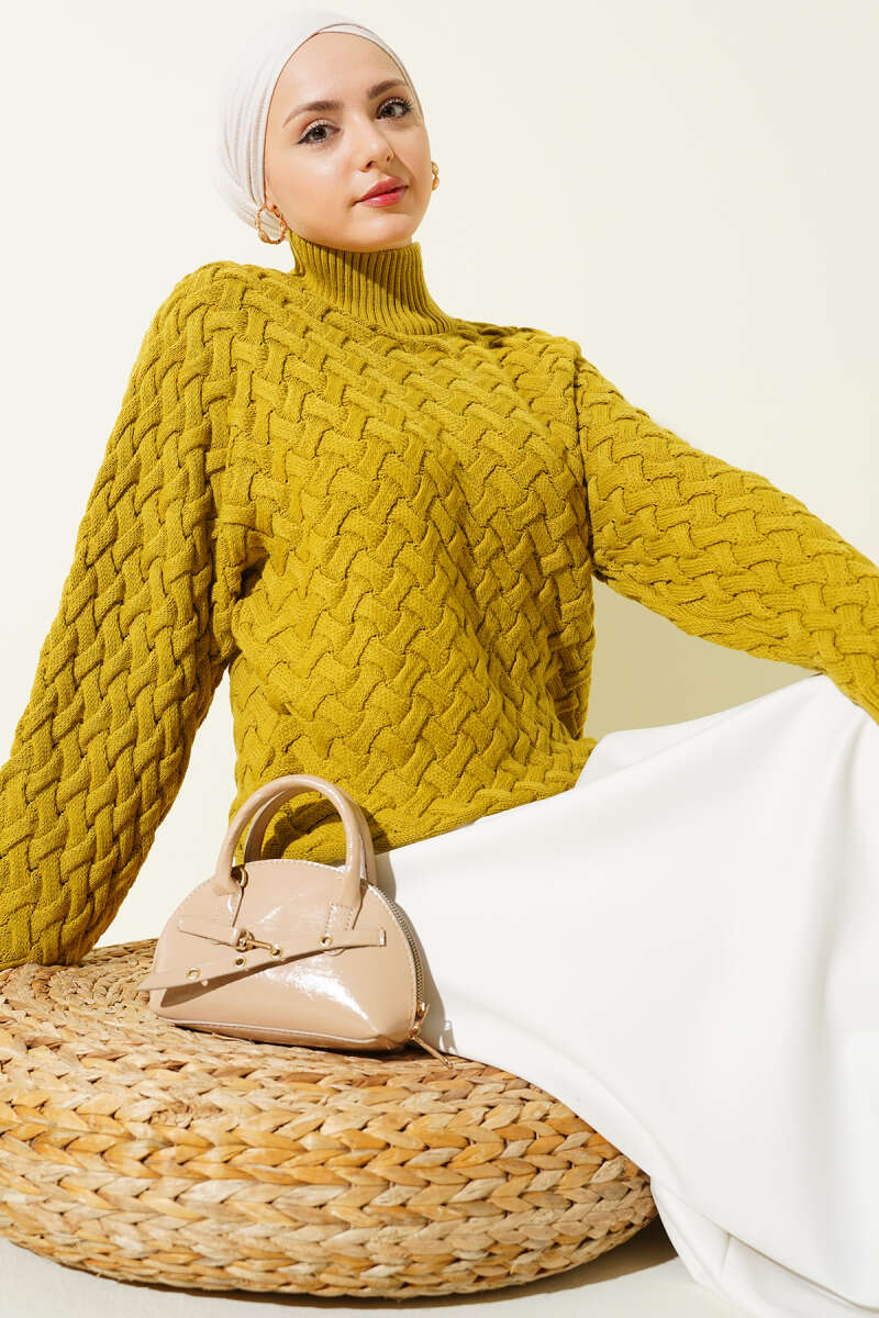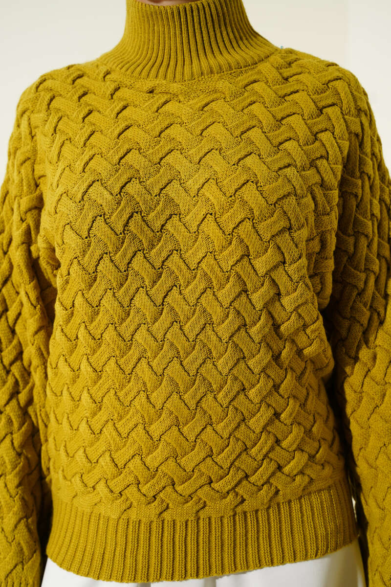 Kabartmalı Yarasa Kol Triko Kazak Haki