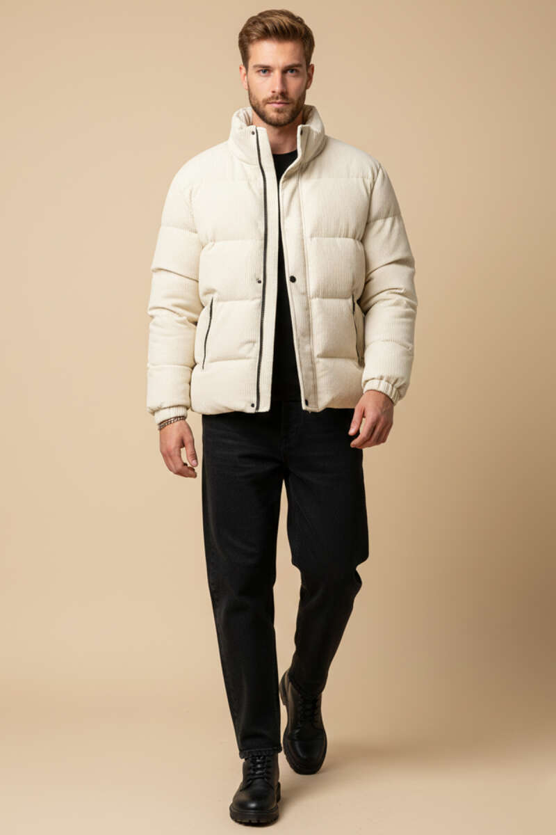 Kapüşonlu Erkek Şişme Mont Ekru