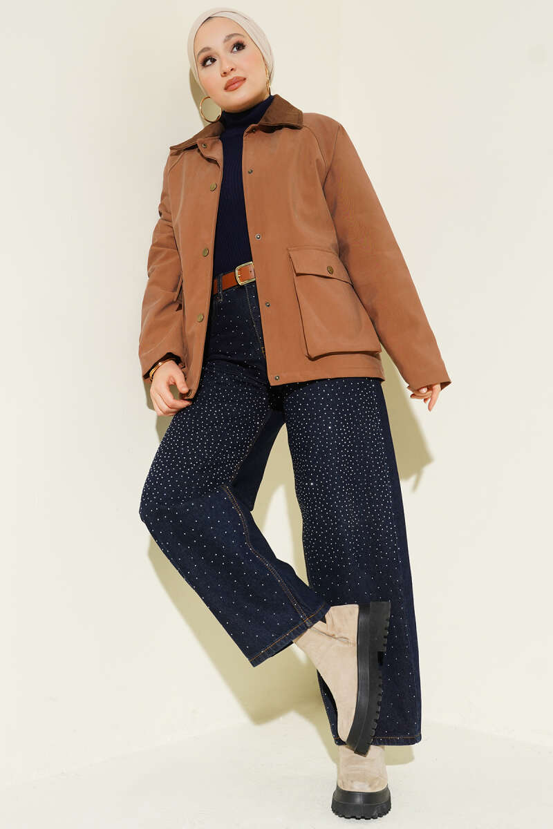 Bel Tünelli Çıtçıtlı Peluş Ceket Kahve