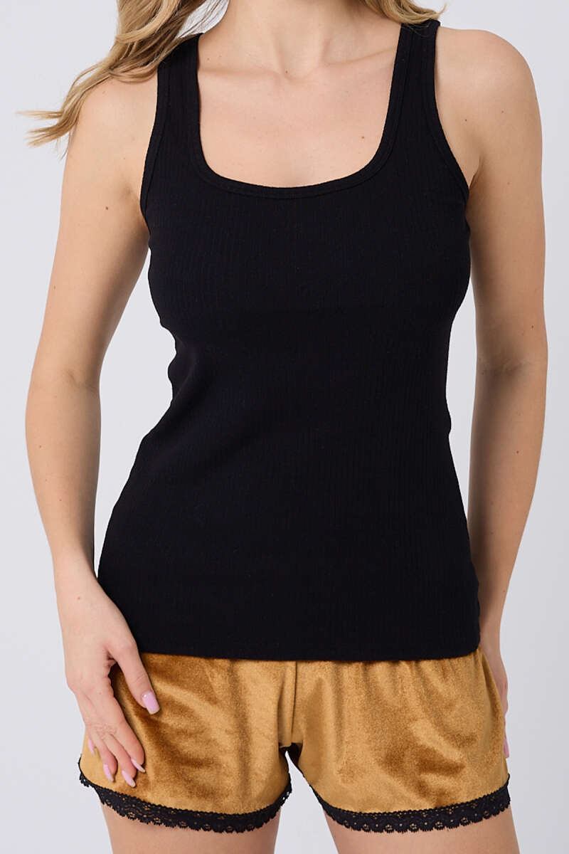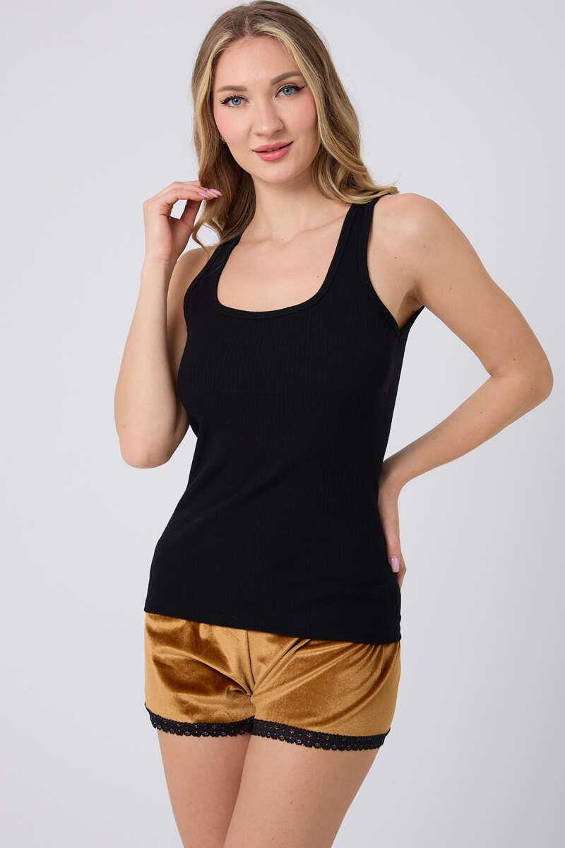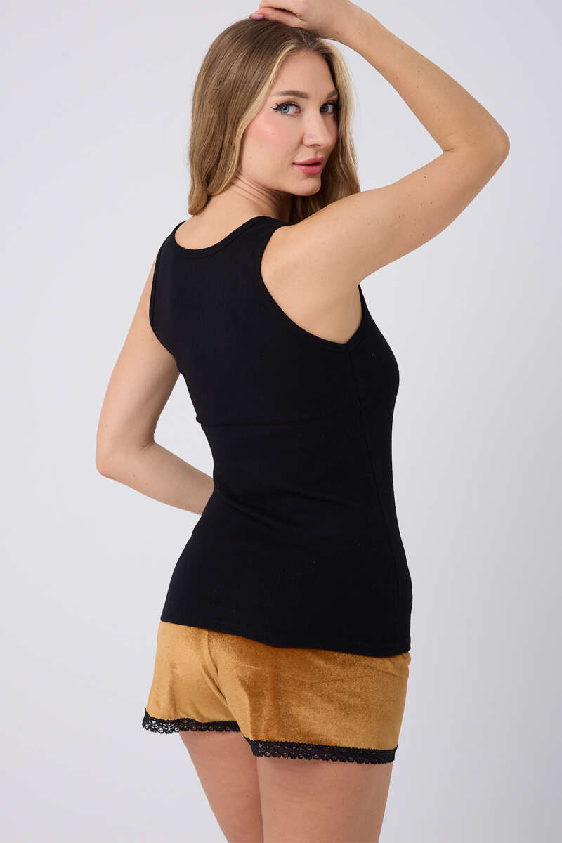 Kadife Şortlu Pijama Takımı Siyah Hardal