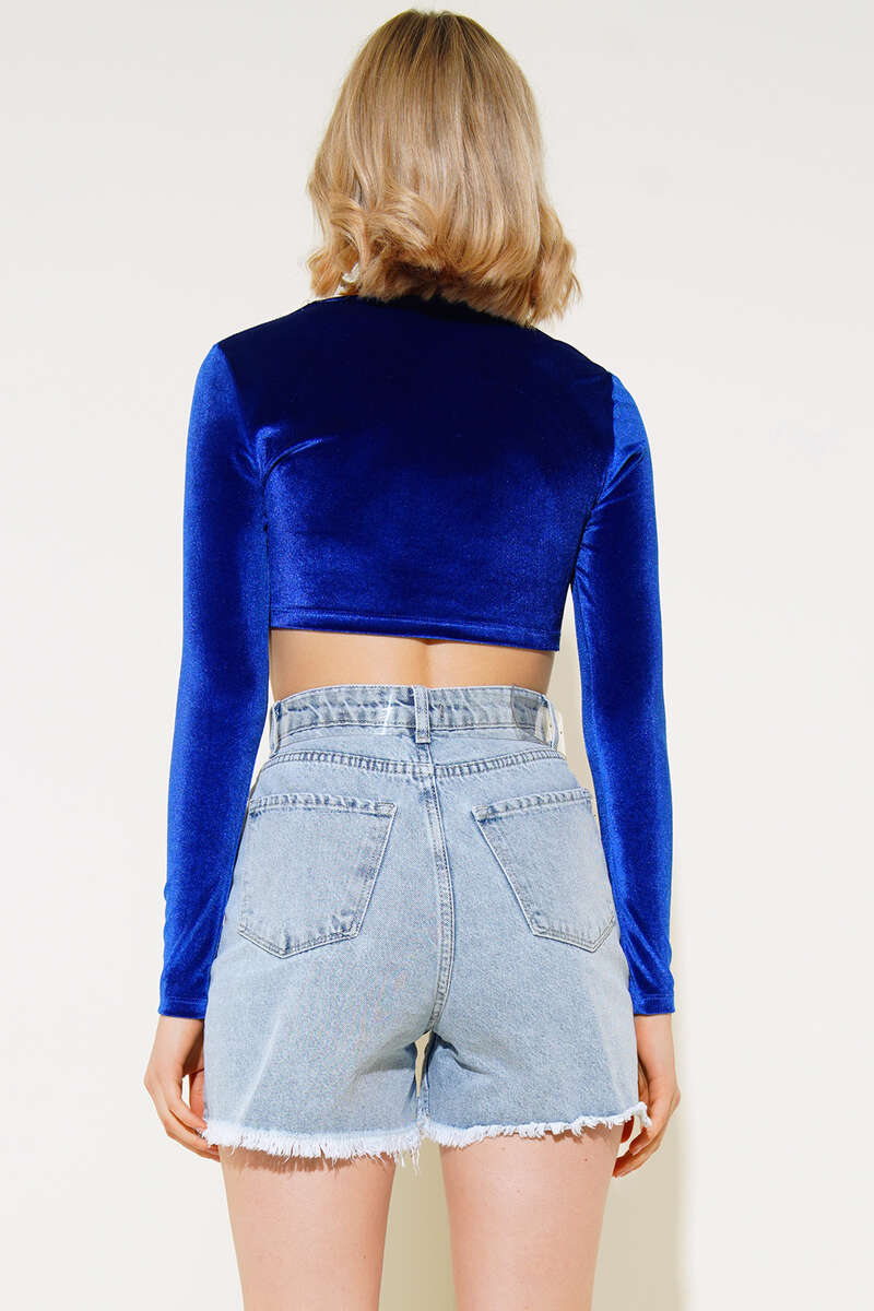 Yeni sezon kadife crop modelimiz sezonun favorileri arasında yerini almaktadır. Tokalı model crop modelimiz uzun kolludur. Göğüs dekolte detayı crop modelimize hareketlilik kazandırmaktadır.