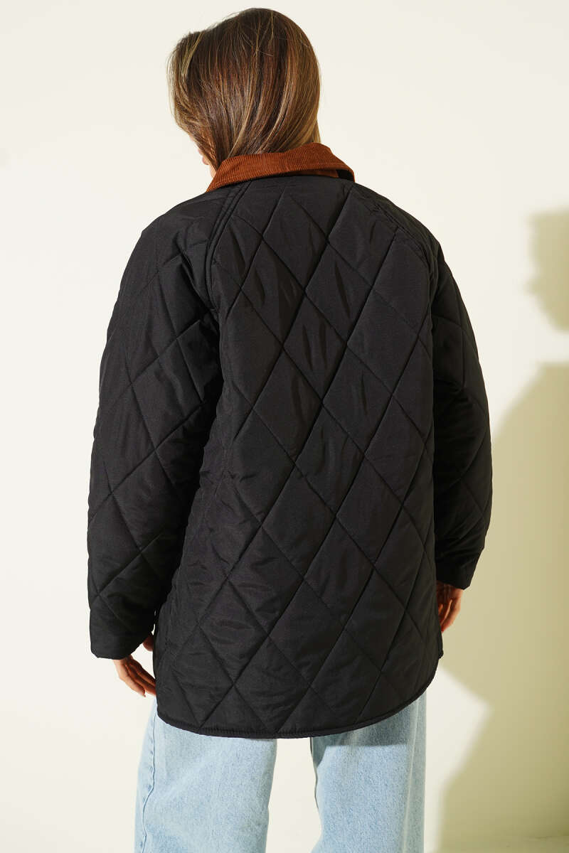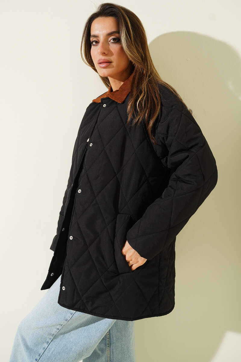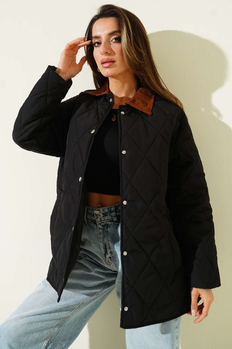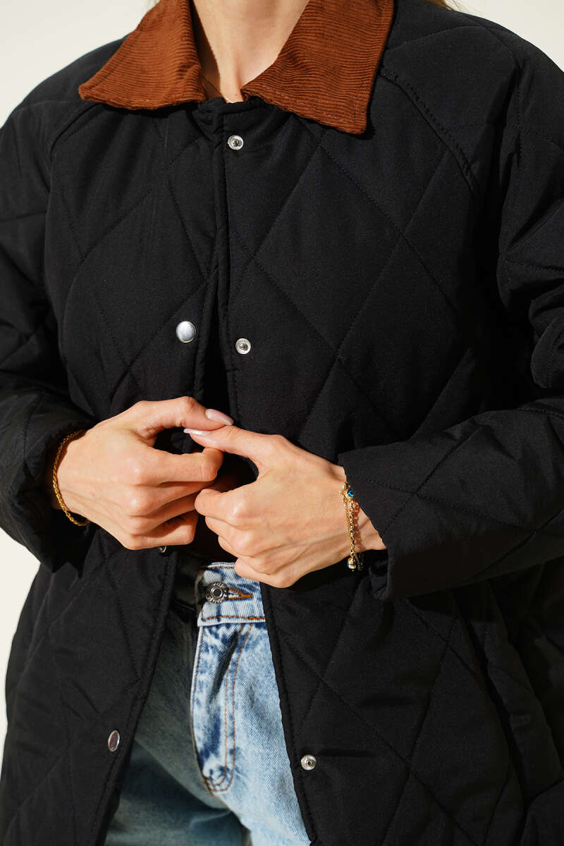 Kadife Yaka Baklava Kapitone Mont Kahve