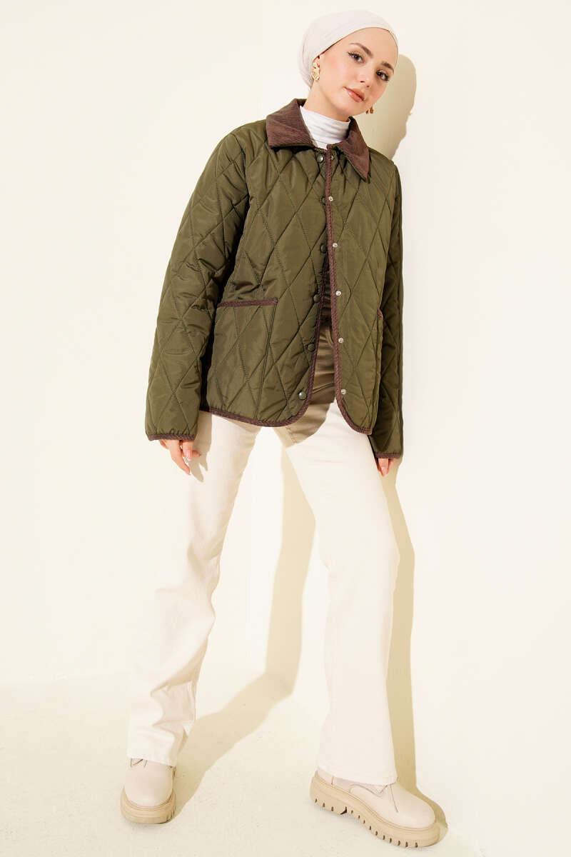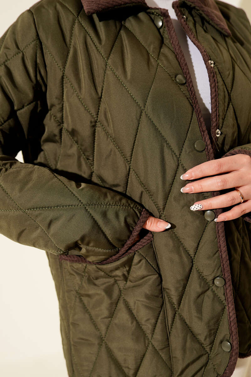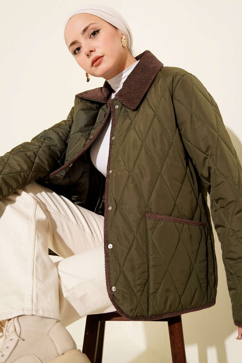 Kadife Yaka Çıtçıtlı Kapitone Mont Kahve