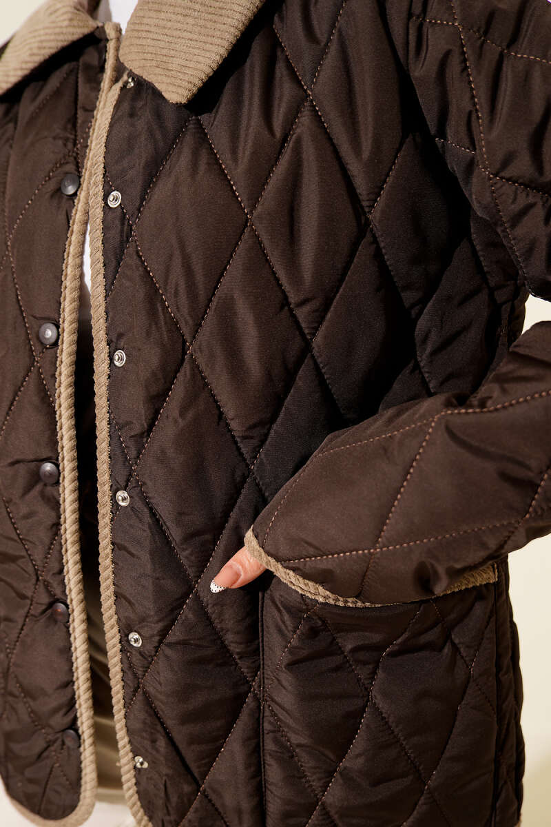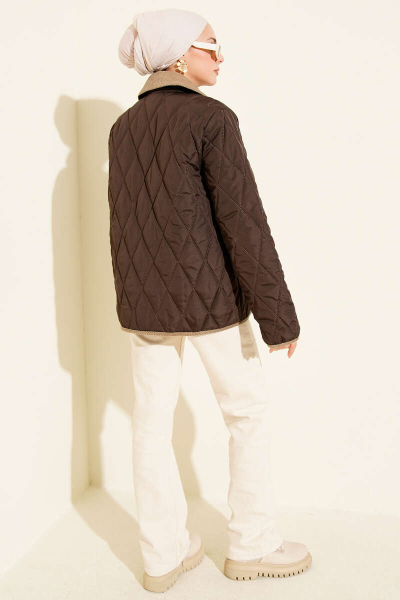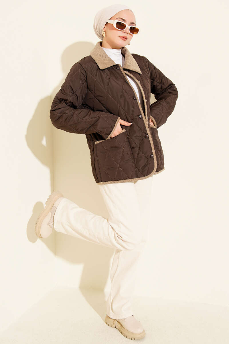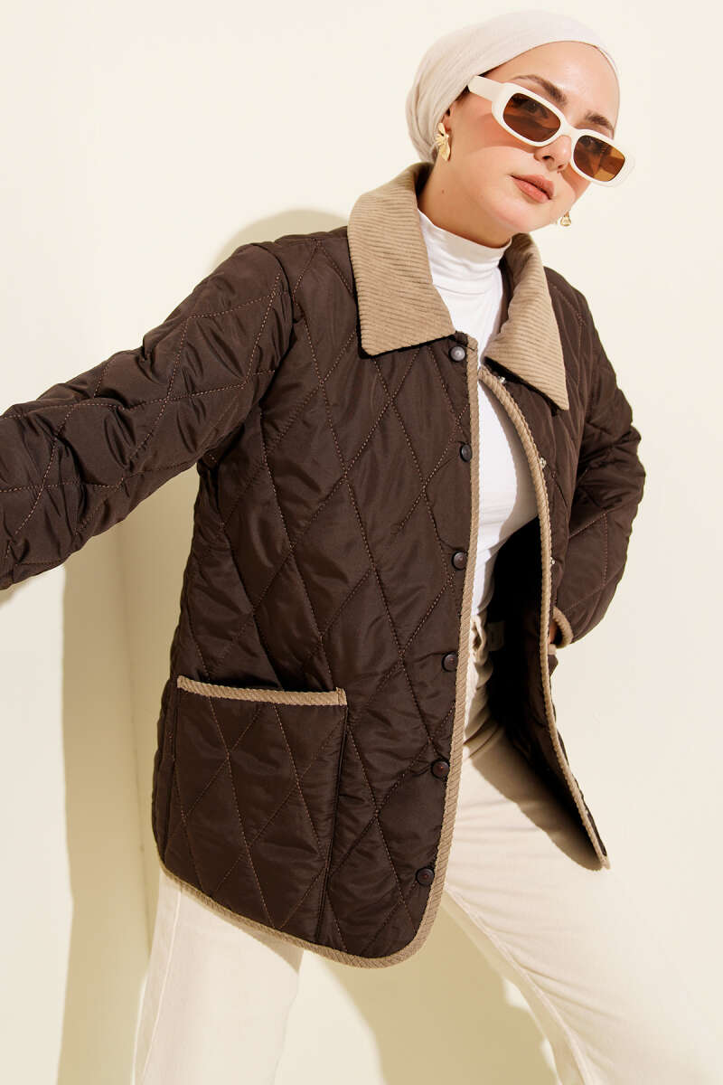 Kadife Yaka Çıtçıtlı Kapitone Mont Haki