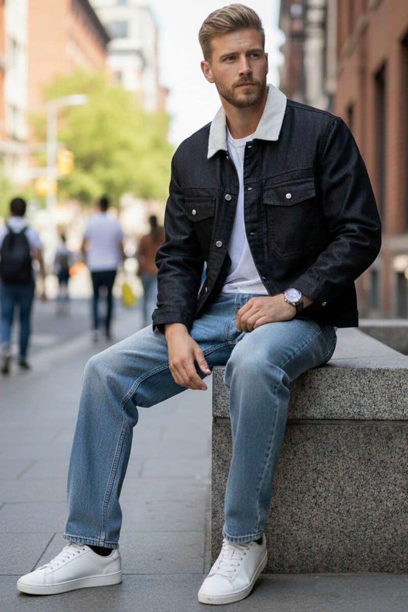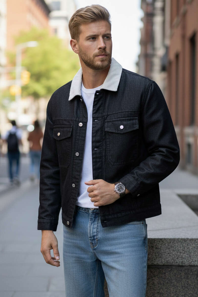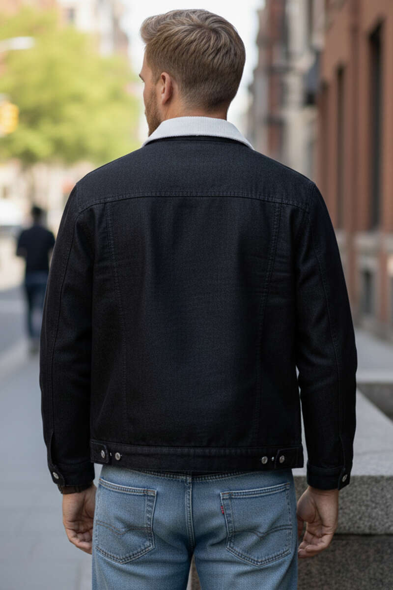 Gömlek Yaka Kürklü Erkek Ceket Siyah