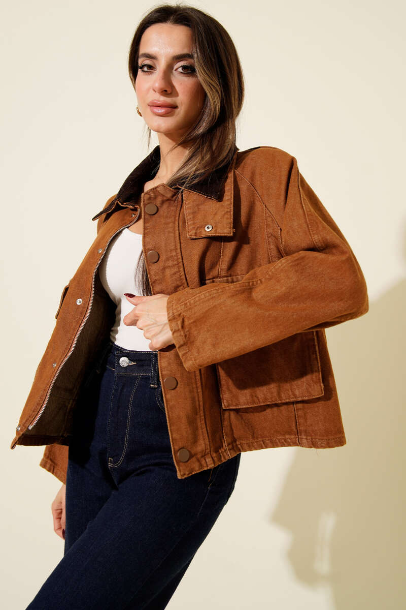 Torba Cepli Ribanalı Kısa Deri Ceket Bej