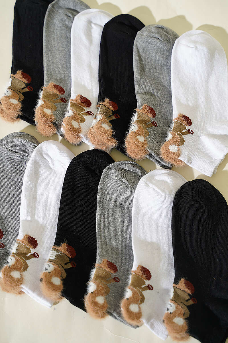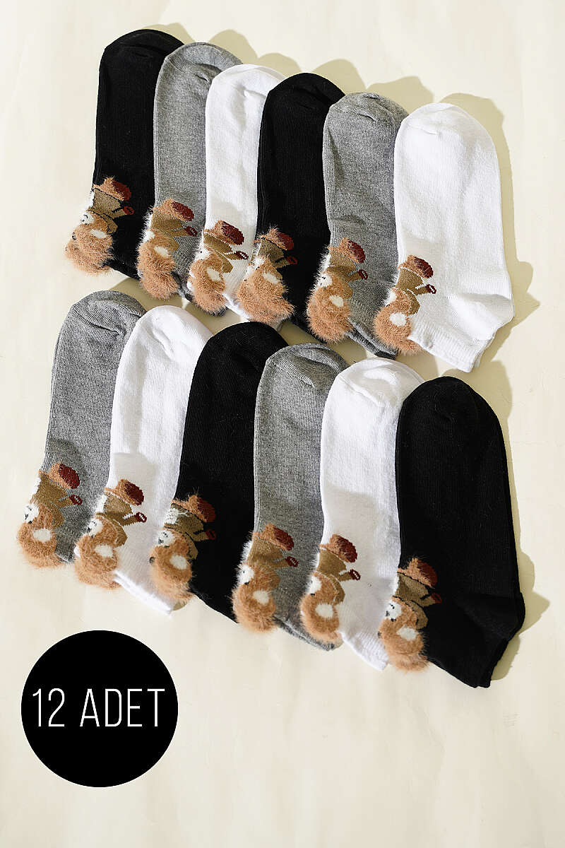 Kadın 12'li Desenli Sakallı Patik Çorap Asorti 1