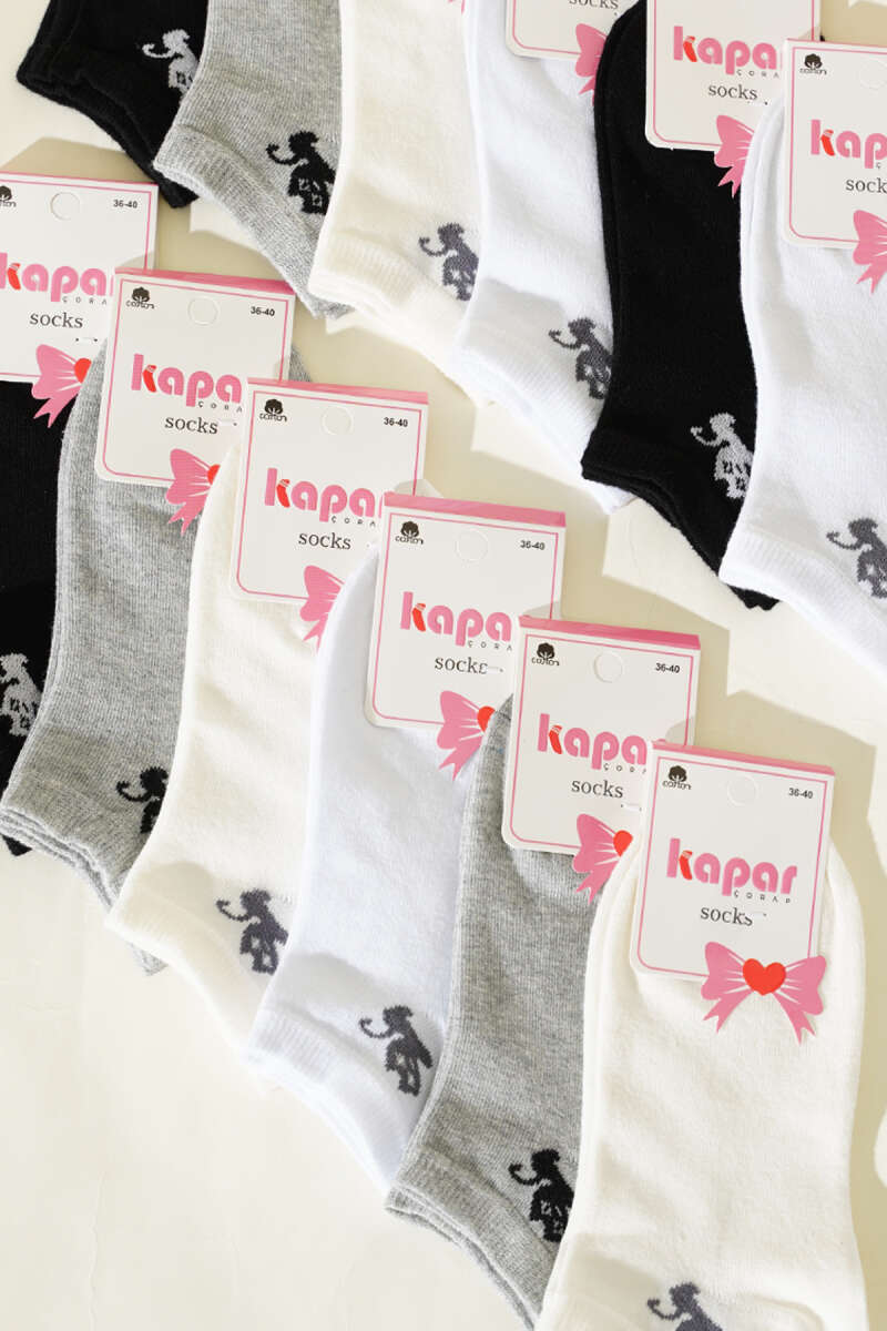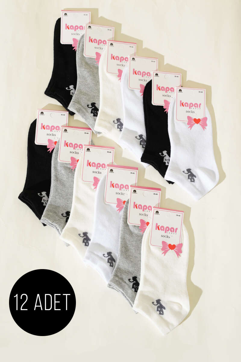 Kadın 12'li Fiyonk Baskılı Patik Çorap Asorti 2