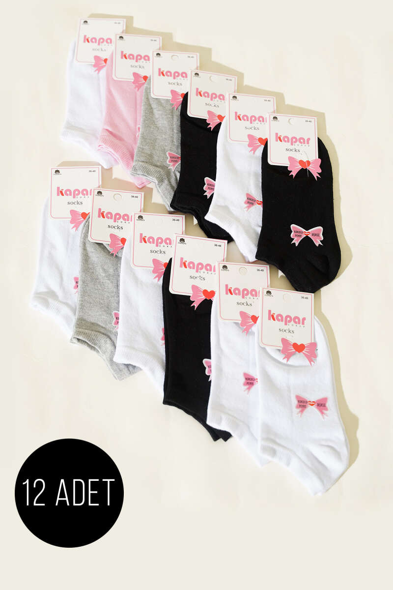 Kadın 12'li Fiyonk Baskılı Patik Çorap Asorti 6