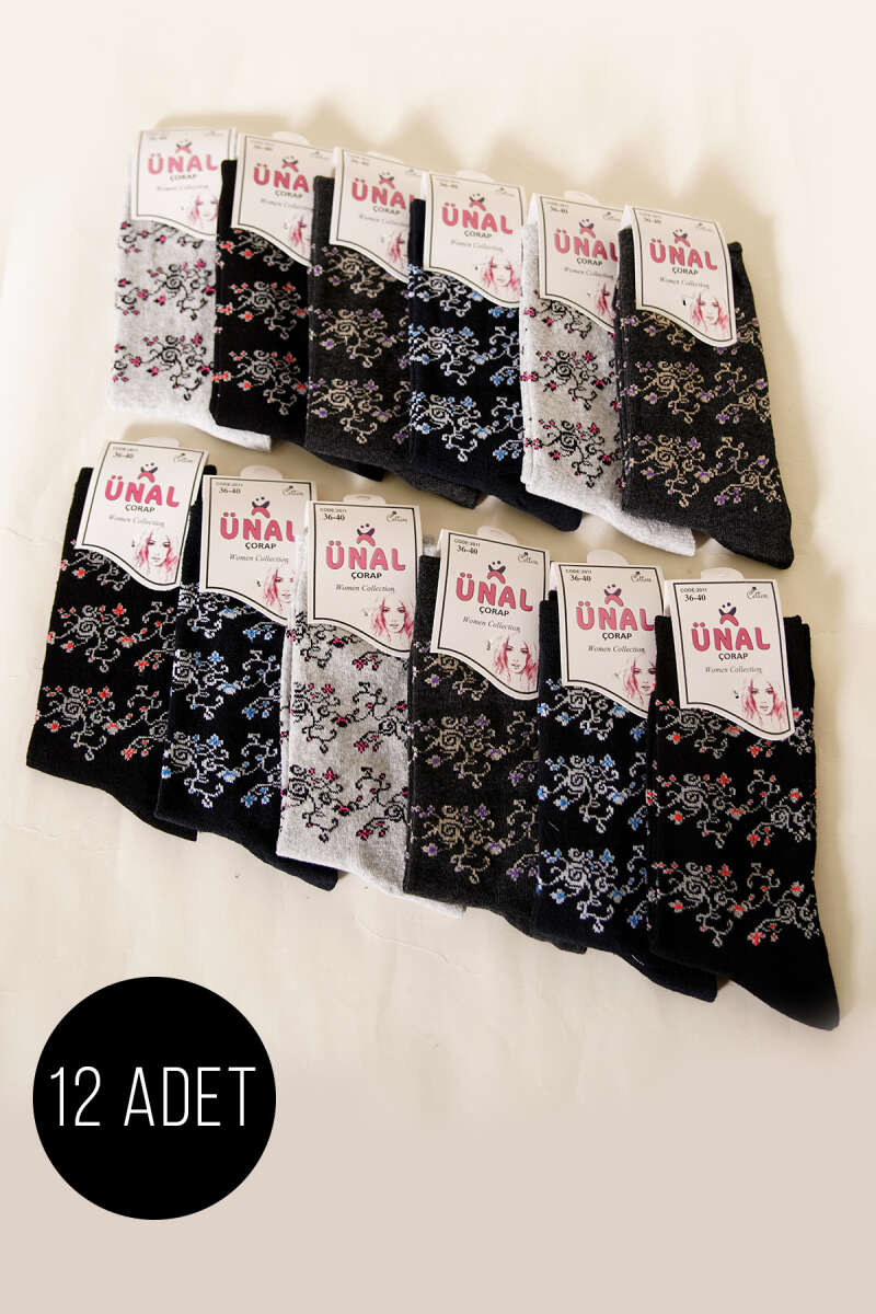 Kadın 12'li Leopar Desen Soket Çorap Asorti 1