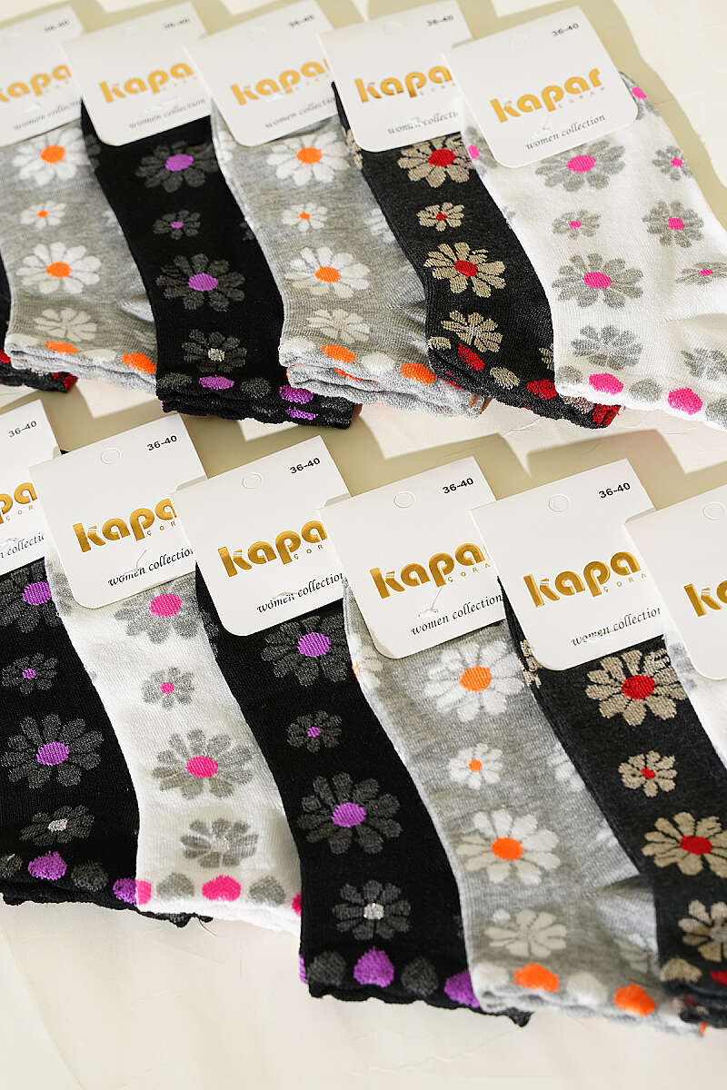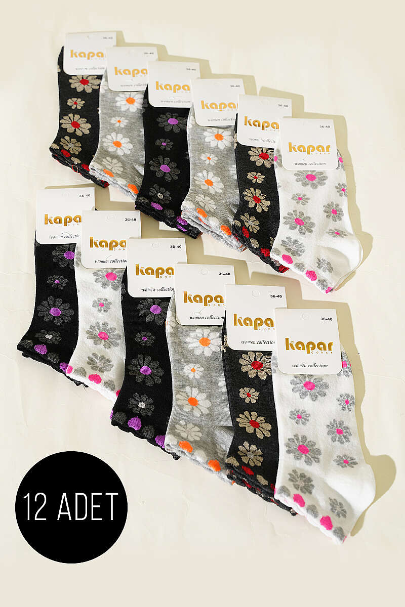 Kadın 12'li Renkli Desenli Patik Çorap Asorti 2