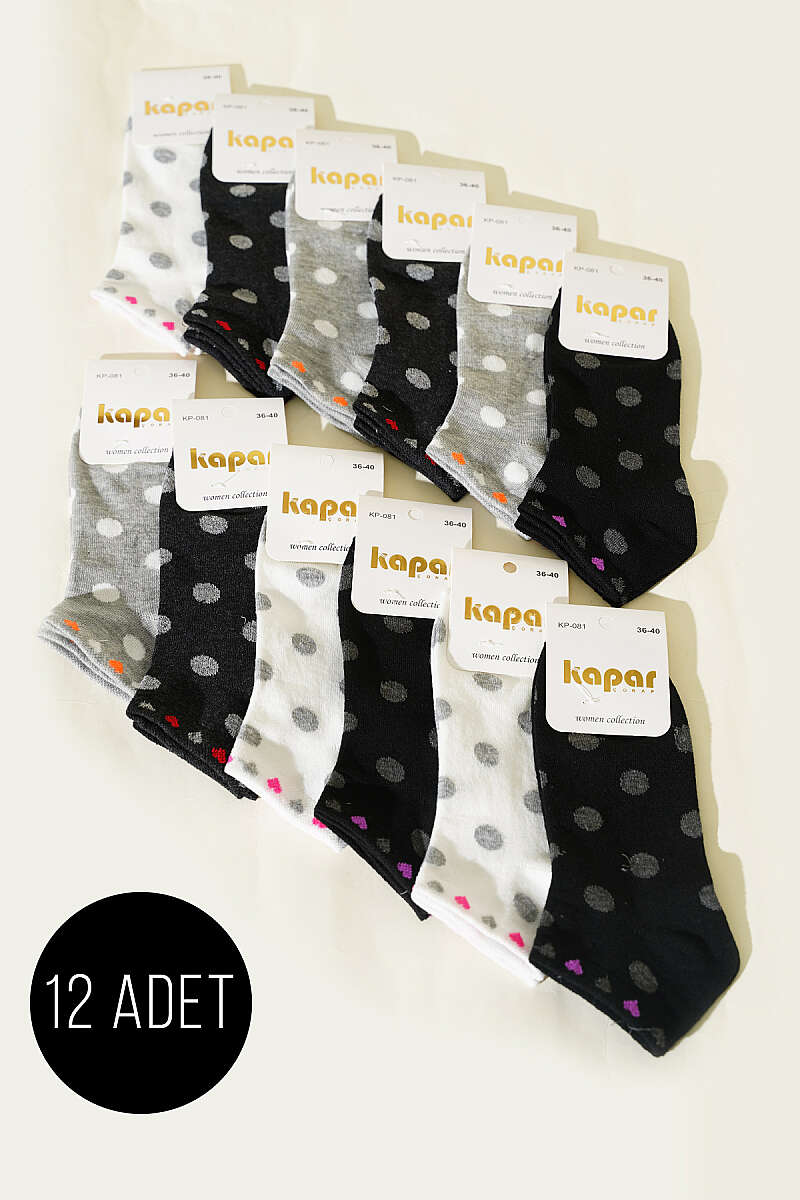 Kadın 12'li Renkli Desenli Patik Çorap Asorti 5