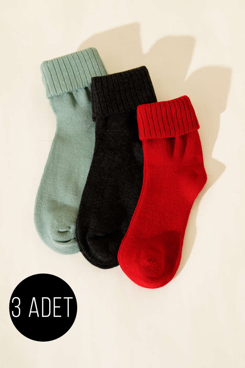Kadın 3'lü Bot Çorabı Asorti 7