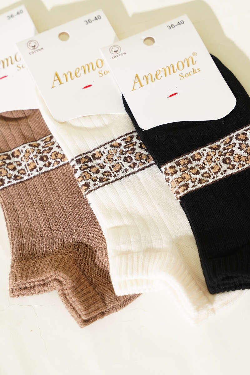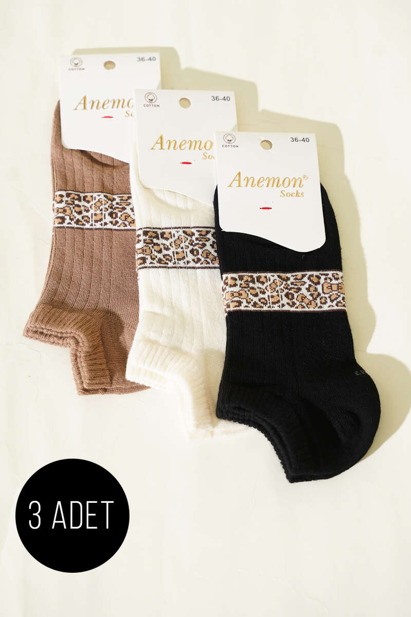 Kadın 3'lü Desenli Penye Patik Çorap Asorti 3