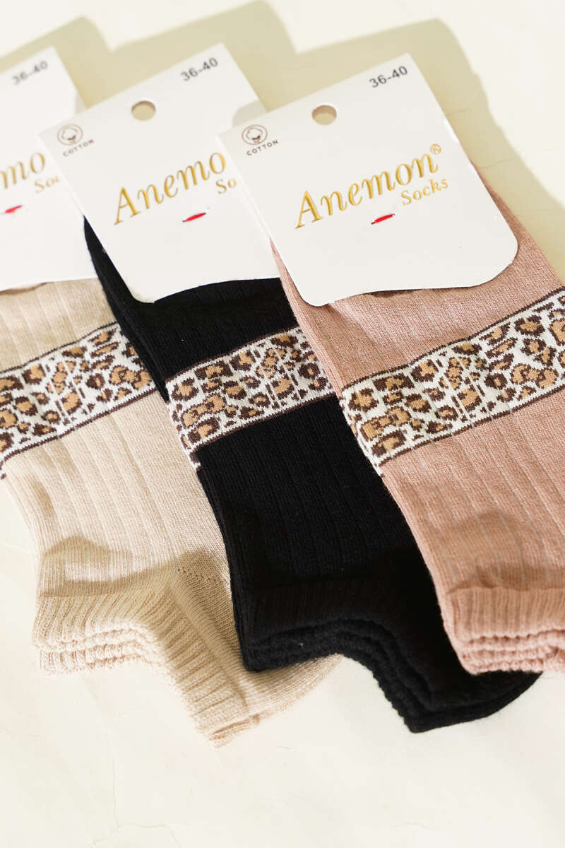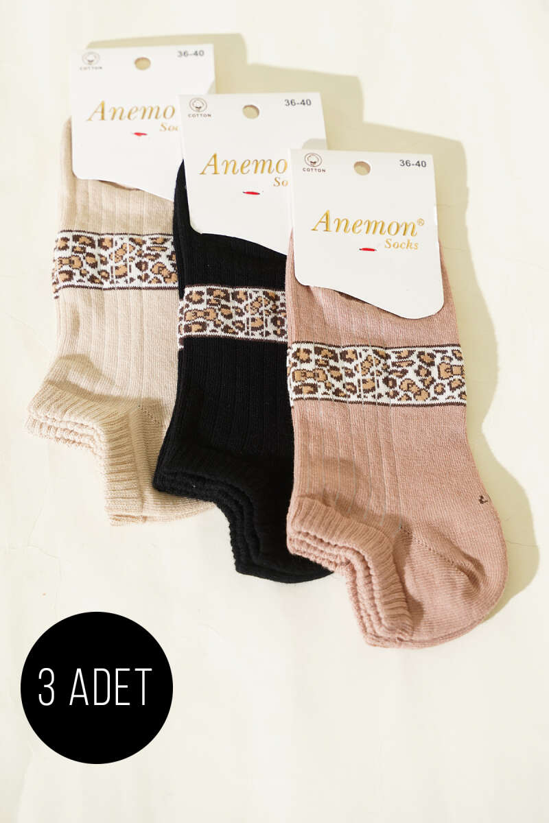 Kadın 3'lü Desenli Penye Patik Çorap Asorti 4