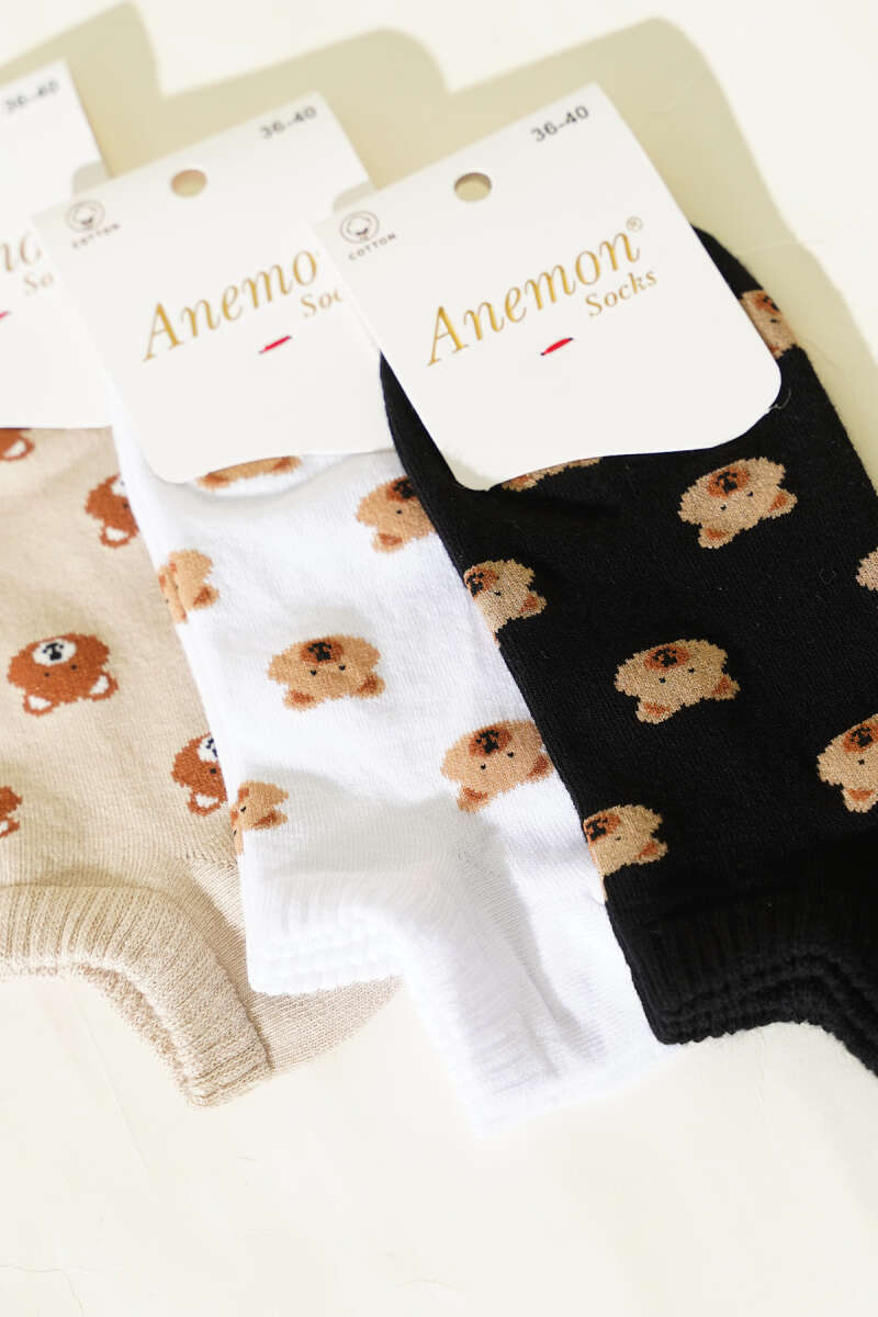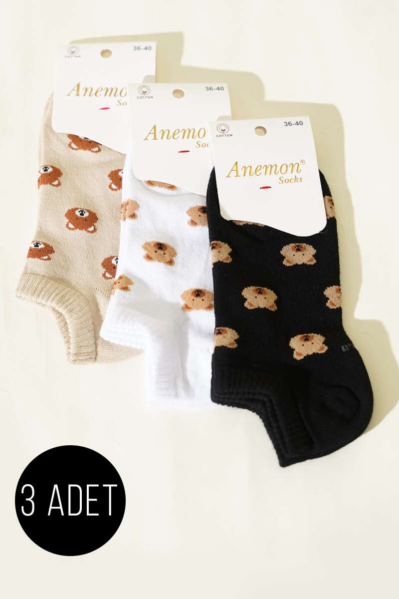 Kadın 3'lü Desenli Penye Patik Çorap Asorti 5