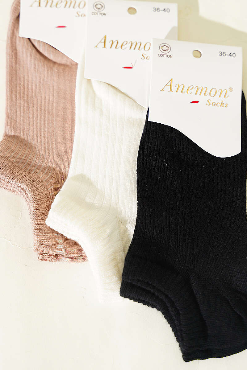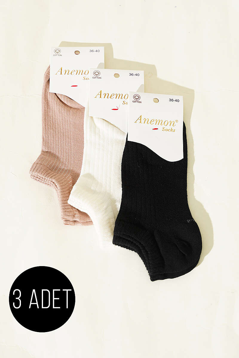 Kadın 3'lü Desenli Penye Patik Çorap Asorti 7