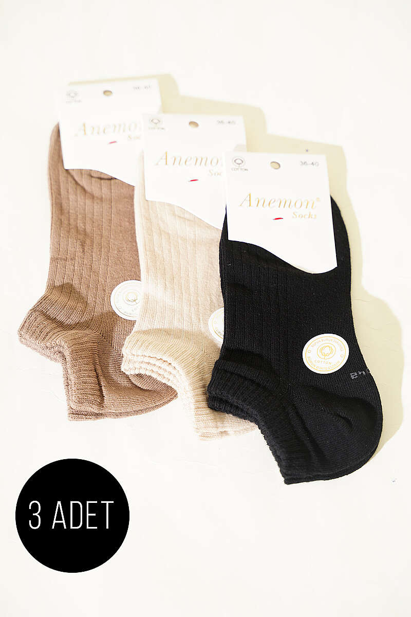 Kadın 3'lü Desenli Penye Patik Çorap Asorti 8