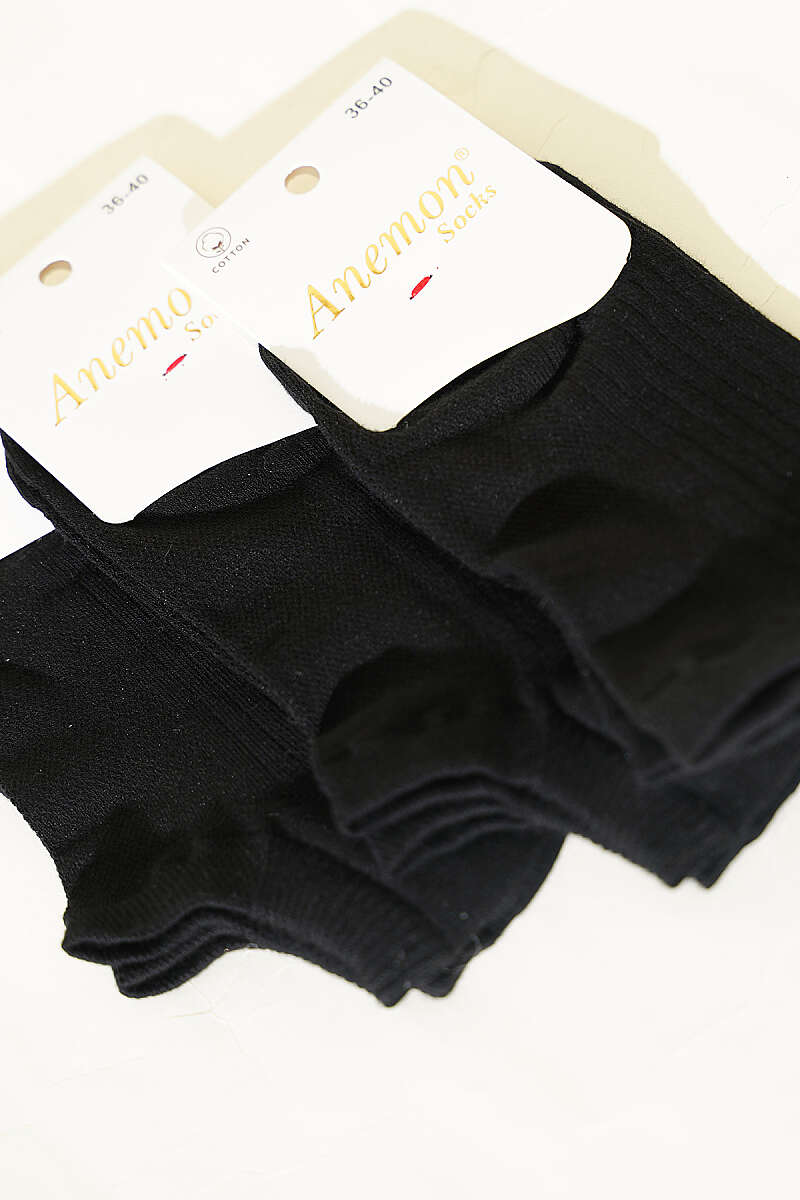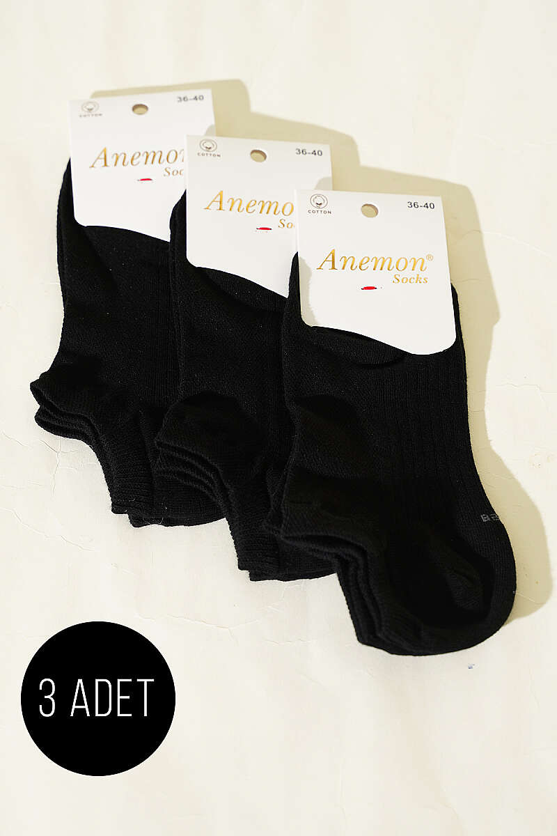Kadın 3'lü Desenli Penye Patik Çorap Asorti Siyah