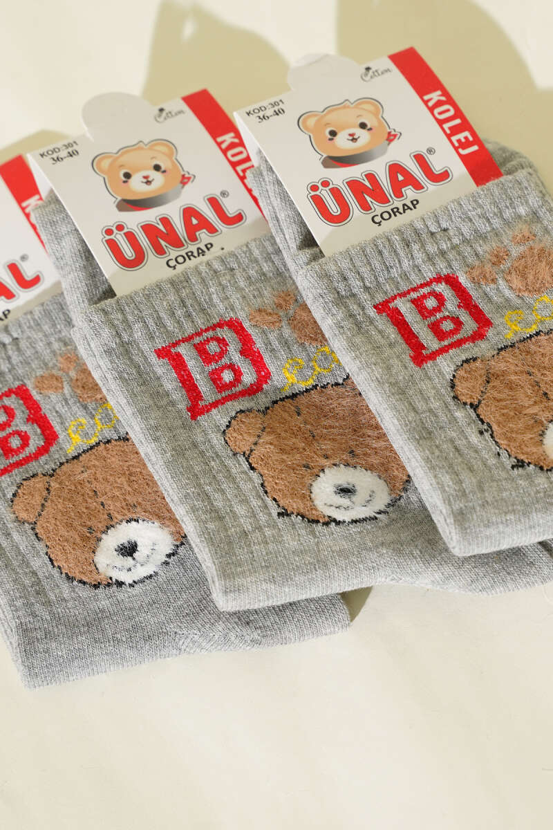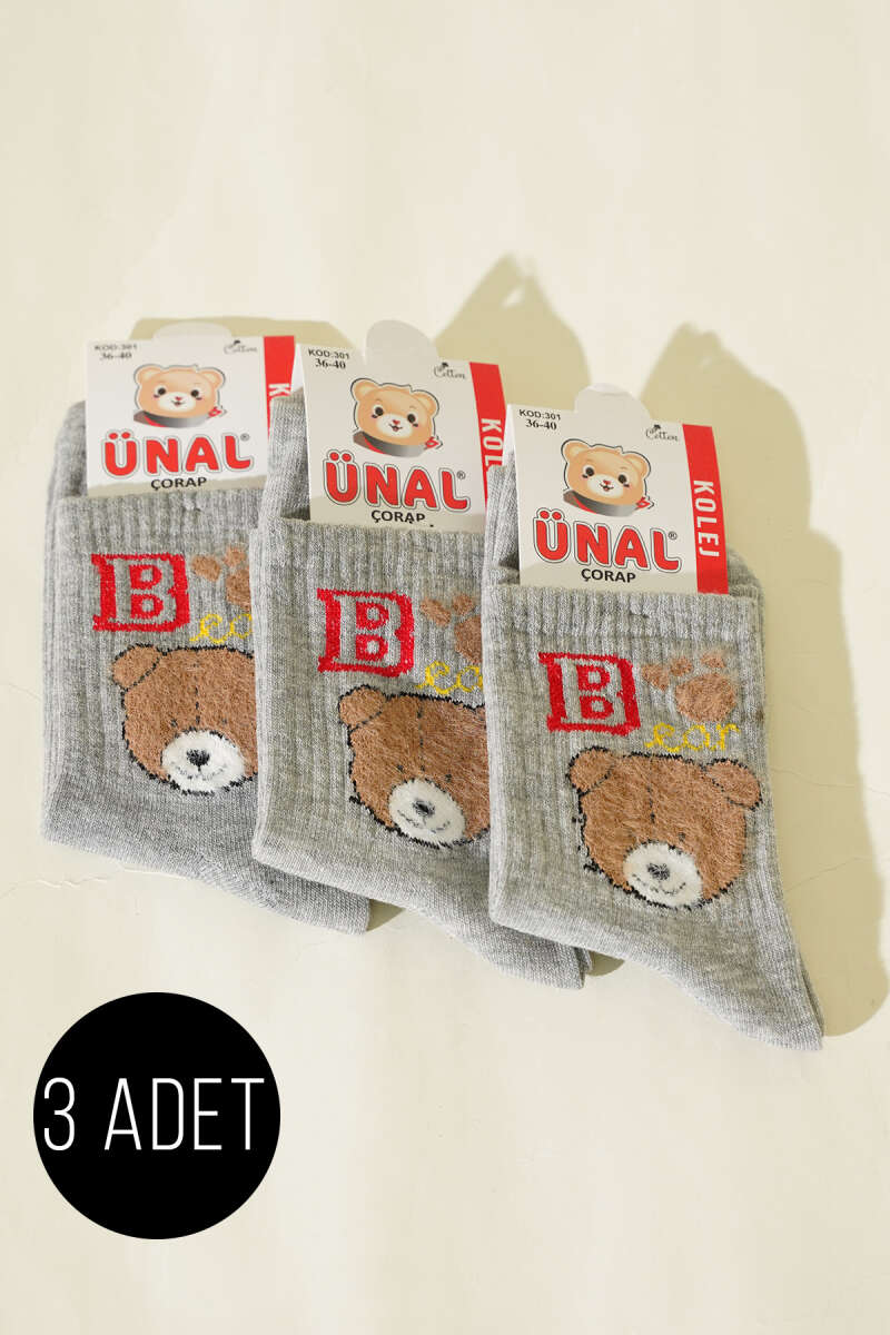 Kadın 3'lü Figürlü Yumoş Soket Çorap Asorti 10
