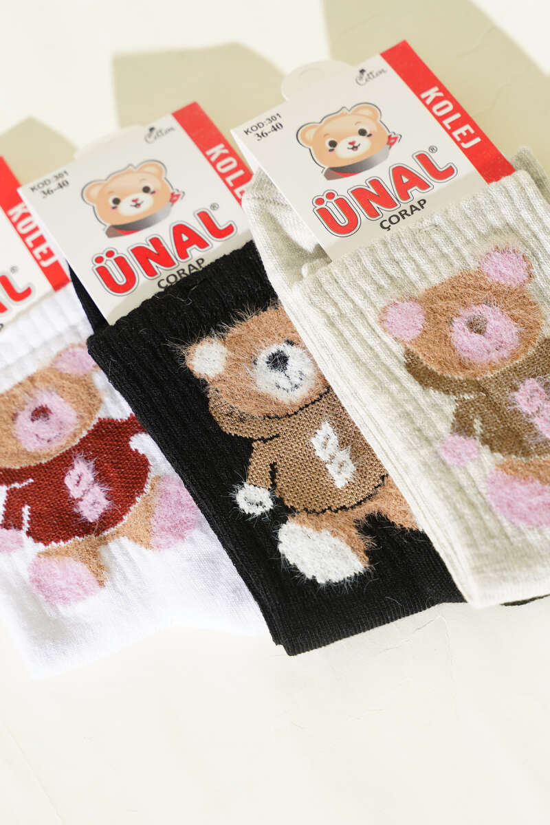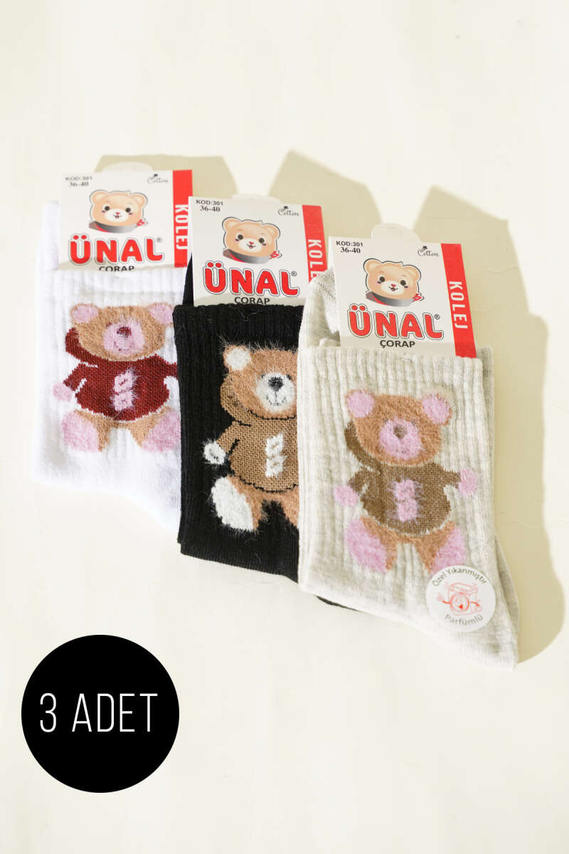 Kadın 3'lü Figürlü Yumoş Soket Çorap Asorti 3