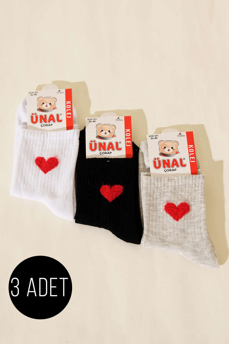 Kadın 3'lü Figürlü Yumoş Soket Çorap Asorti 7
