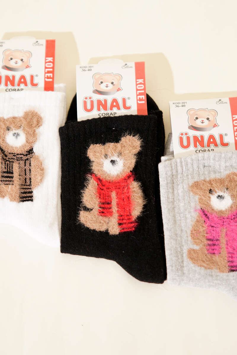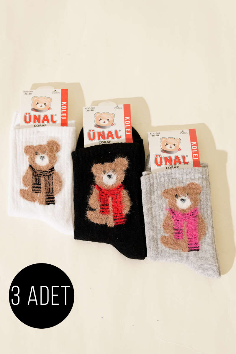 Kadın 3'lü Figürlü Yumoş Soket Çorap Asorti 8