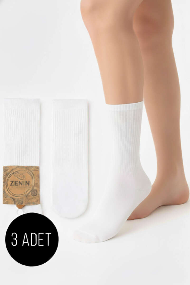Kadın 3'lü Havlu Taban Fitilli Çorap Beyaz