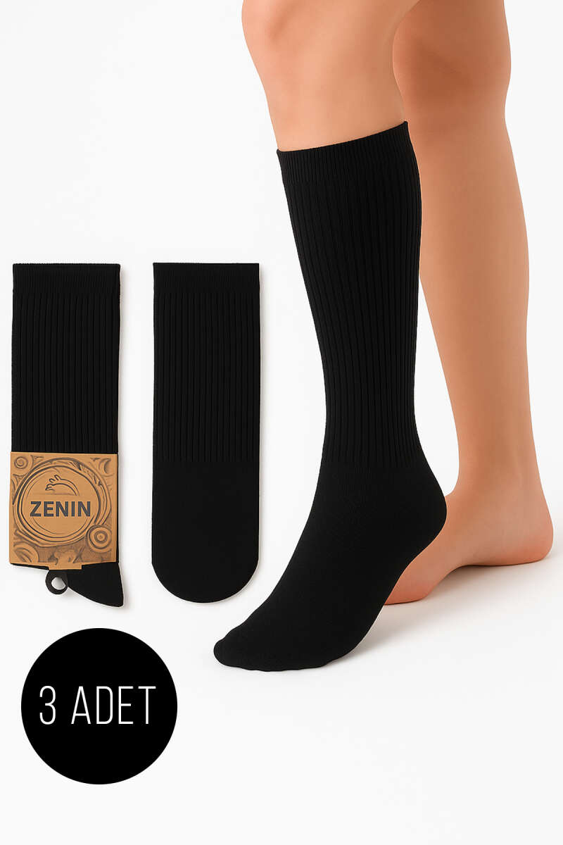 Kadın 3'lü Havlu Taban Fitilli Çorap Siyah