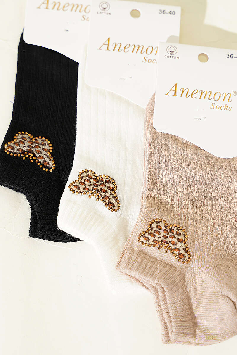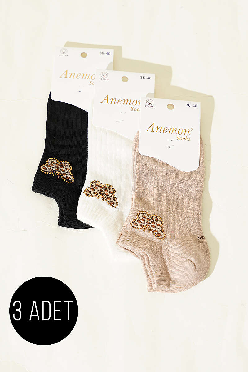 Kadın 3'lü Mini Taş Detaylı Patik Çorap Asorti 16