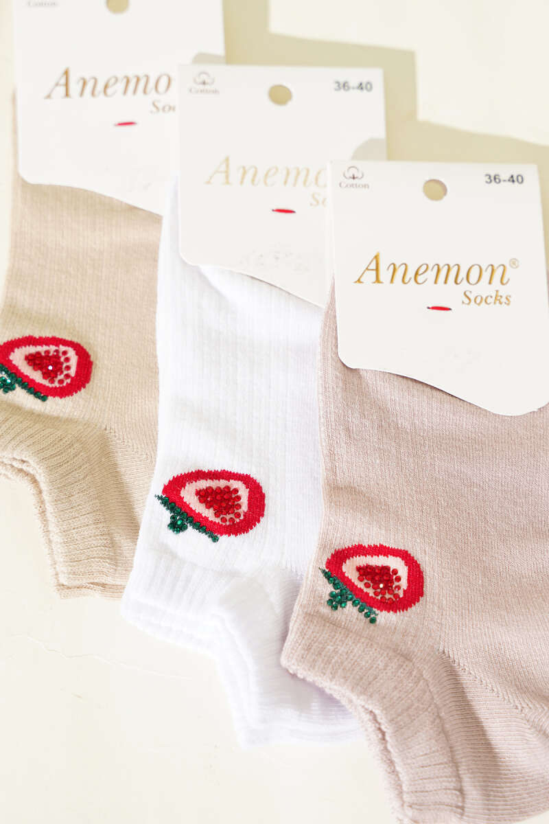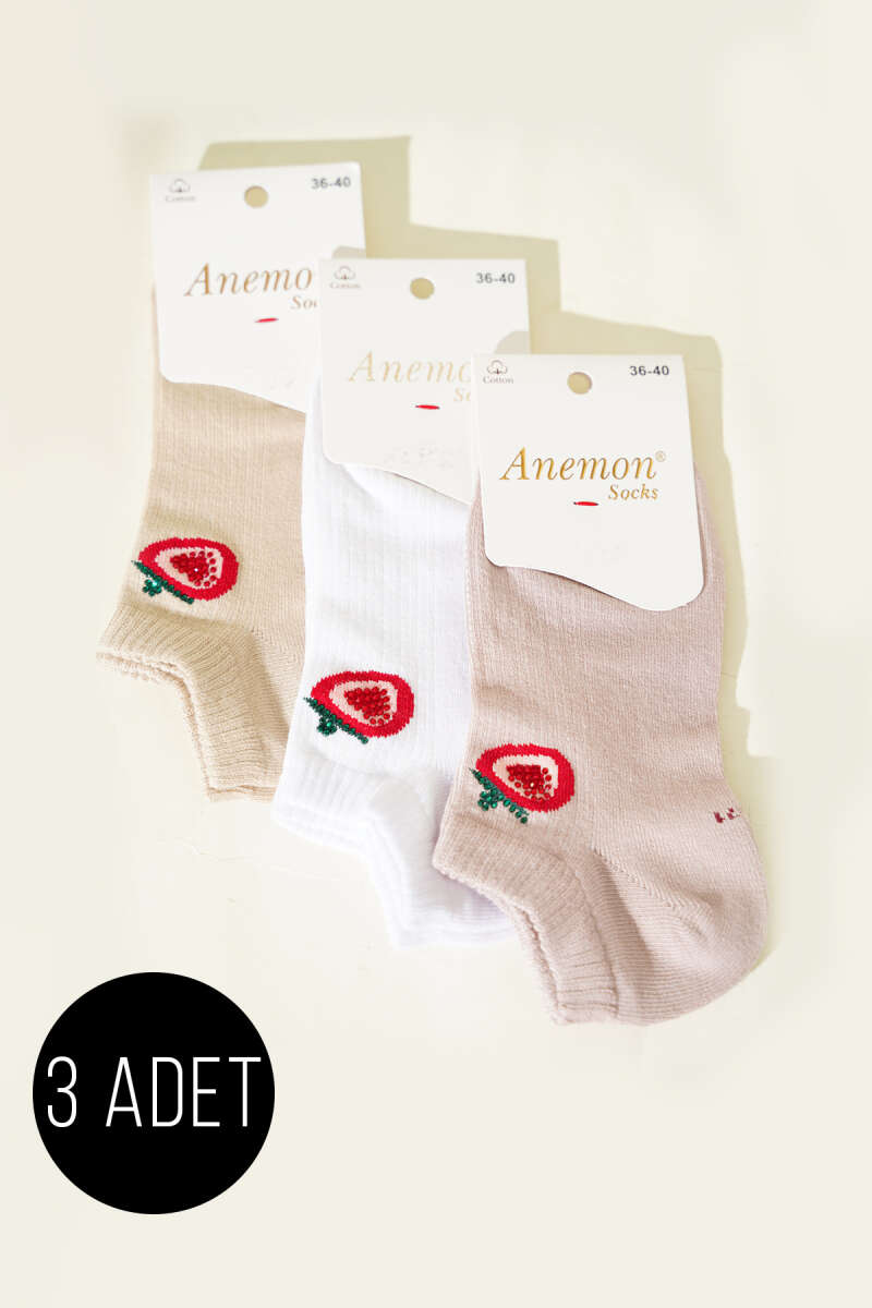 Kadın 3'lü Mini Taş Detaylı Patik Çorap Asorti 17