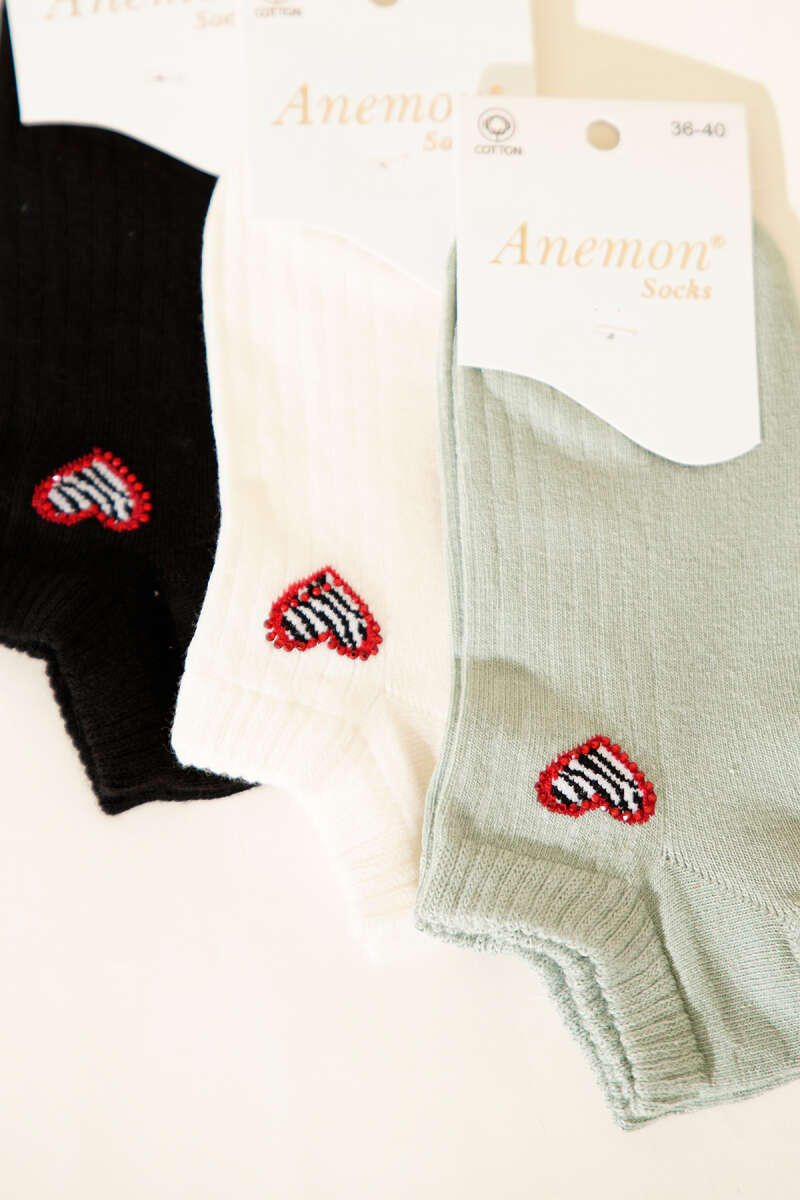 Kadın 3'lü Mini Taş Detaylı Patik Çorap Asorti 2