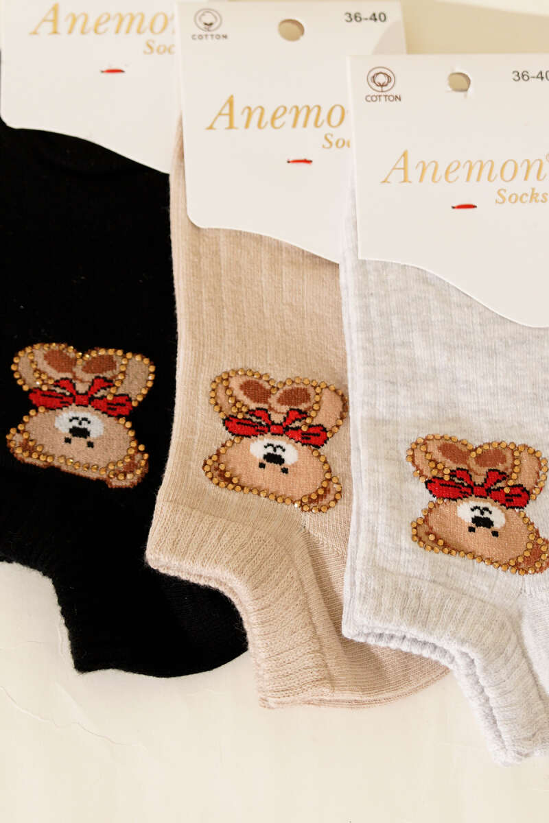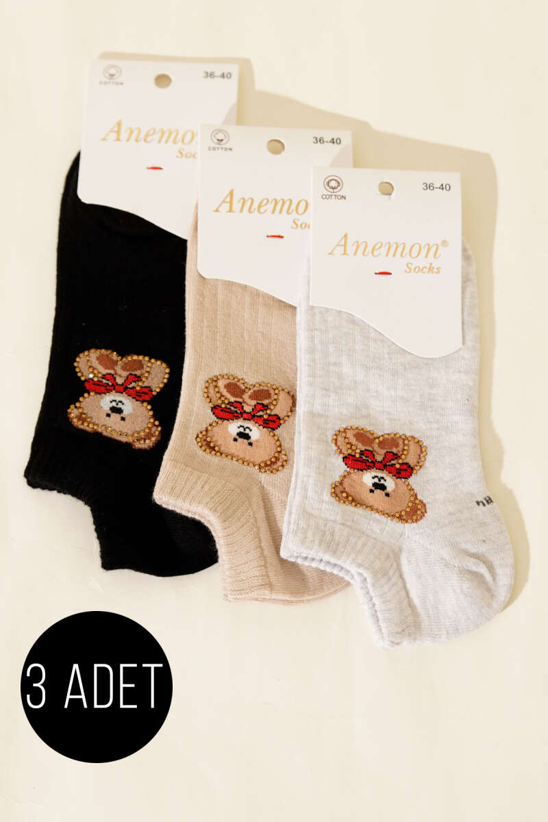 Kadın 3'lü Mini Taş Detaylı Patik Çorap Asorti 6