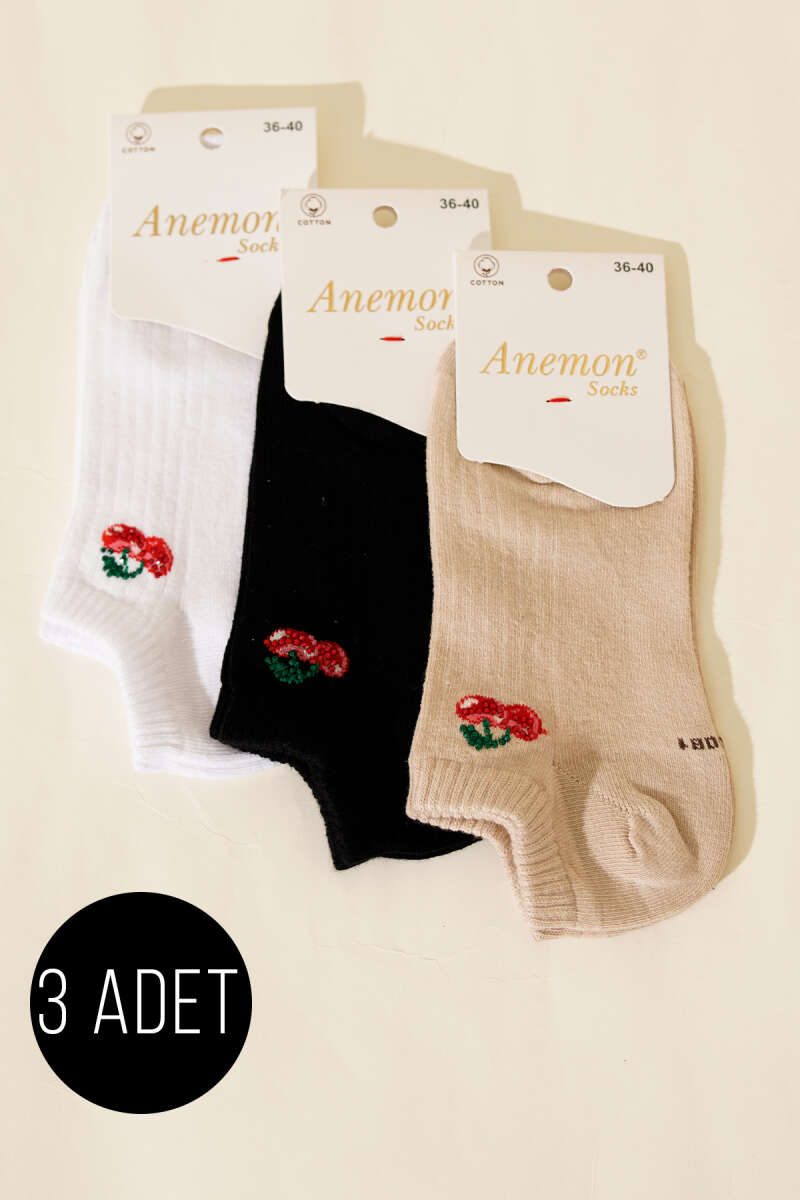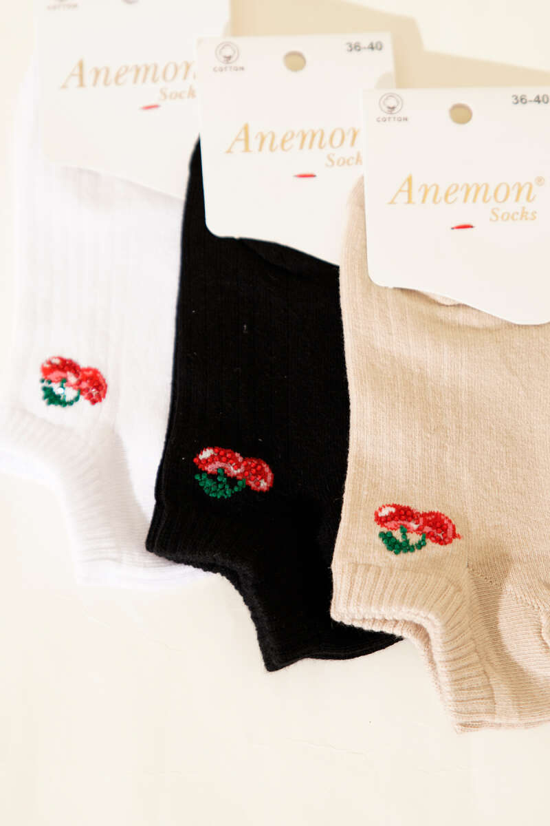 Kadın 3'lü Mini Taş Detaylı Patik Çorap Asorti 7