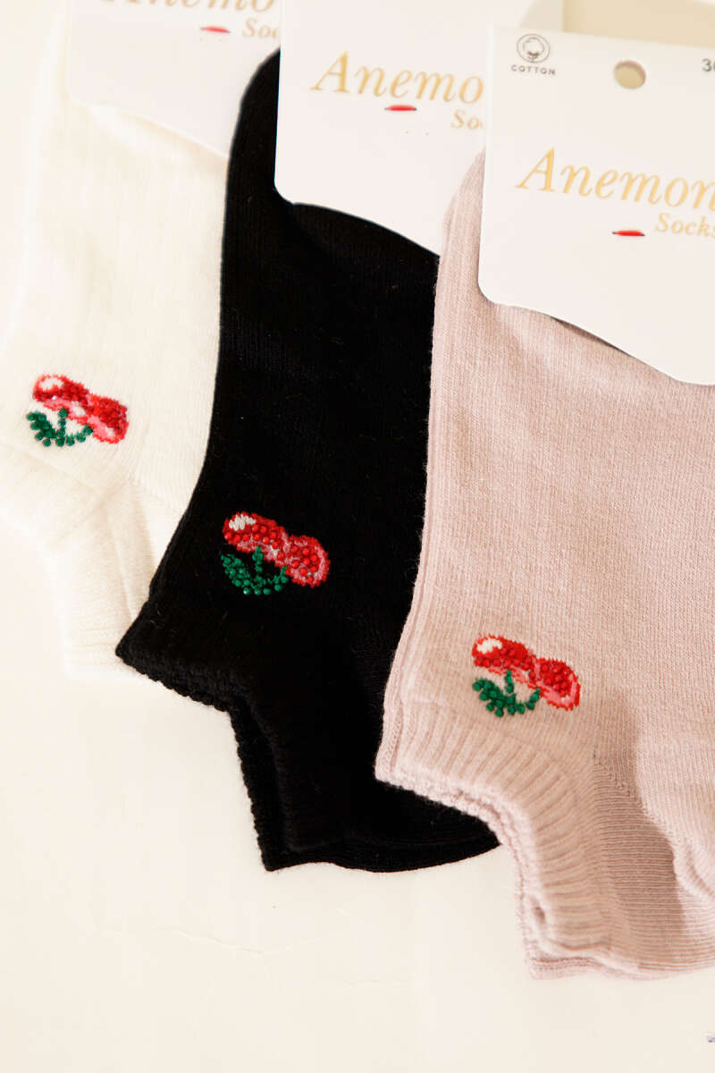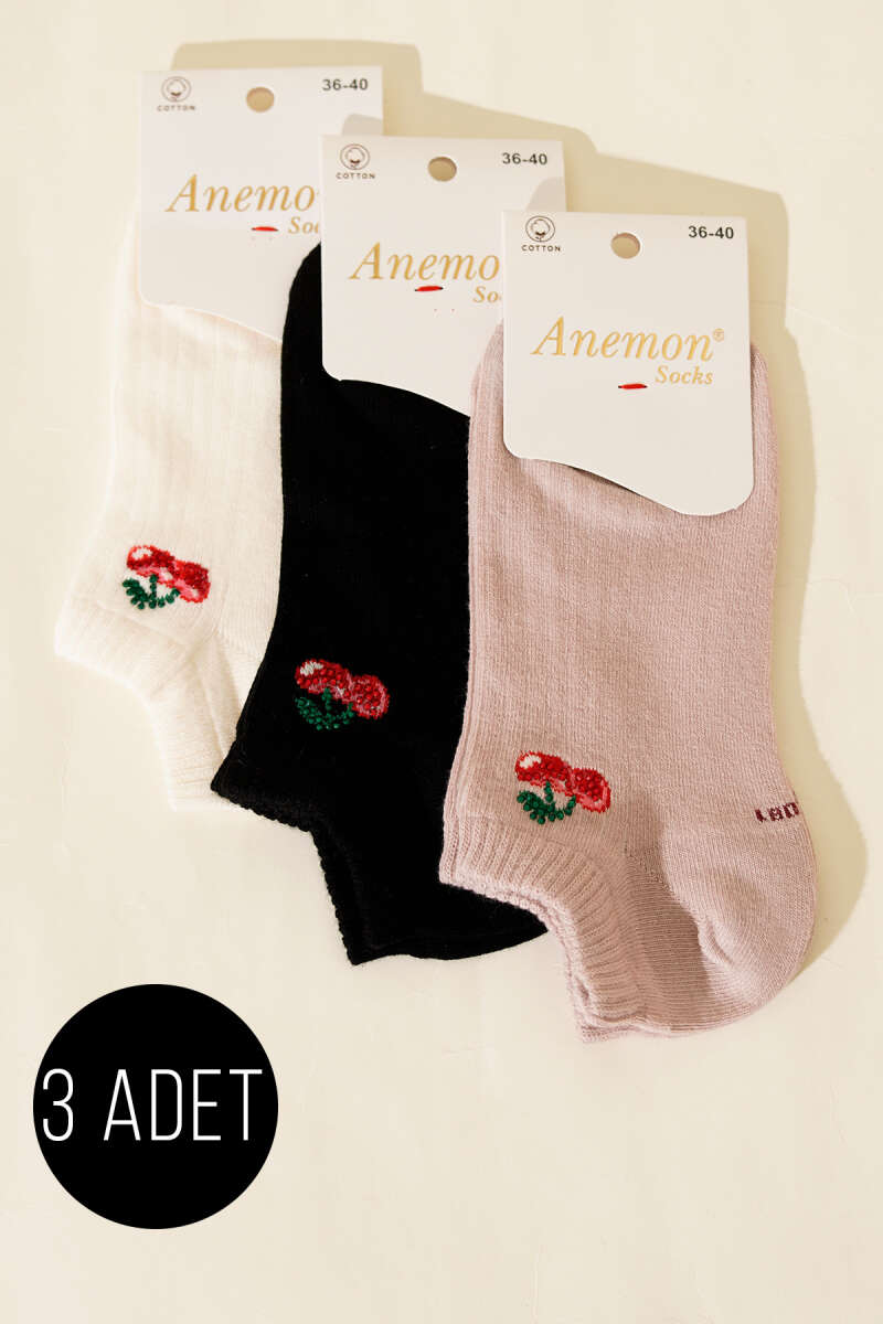 Kadın 3'lü Mini Taş Detaylı Patik Çorap Asorti 8