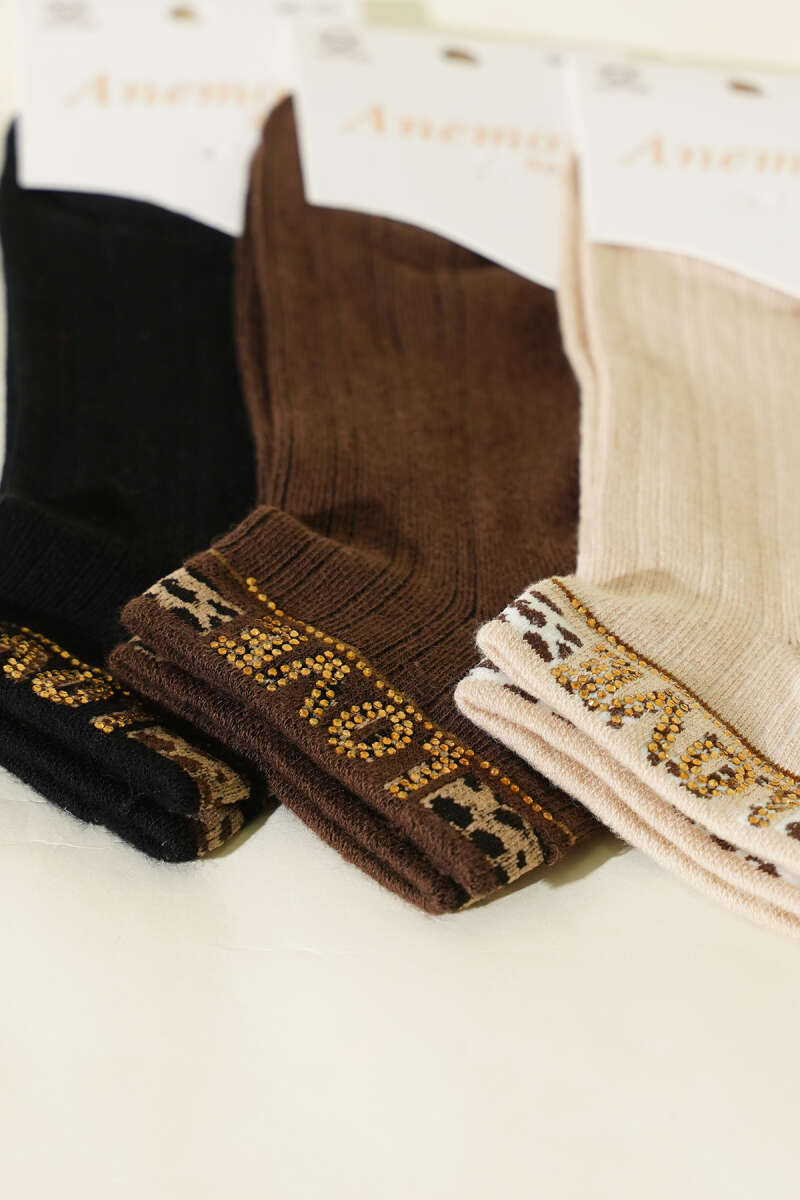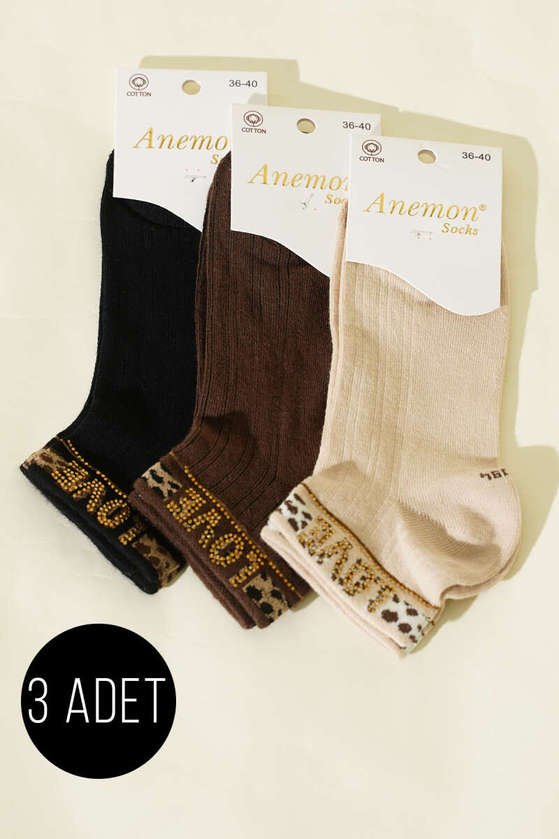 Kadın 3'lü Mini Taş Detaylı Patik Çorap Asorti 9