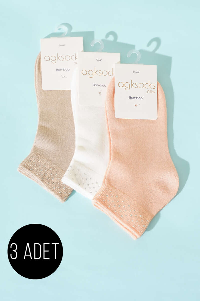 Kadın 3'lü Mini Taşlı Patik Çorap Asorti 2