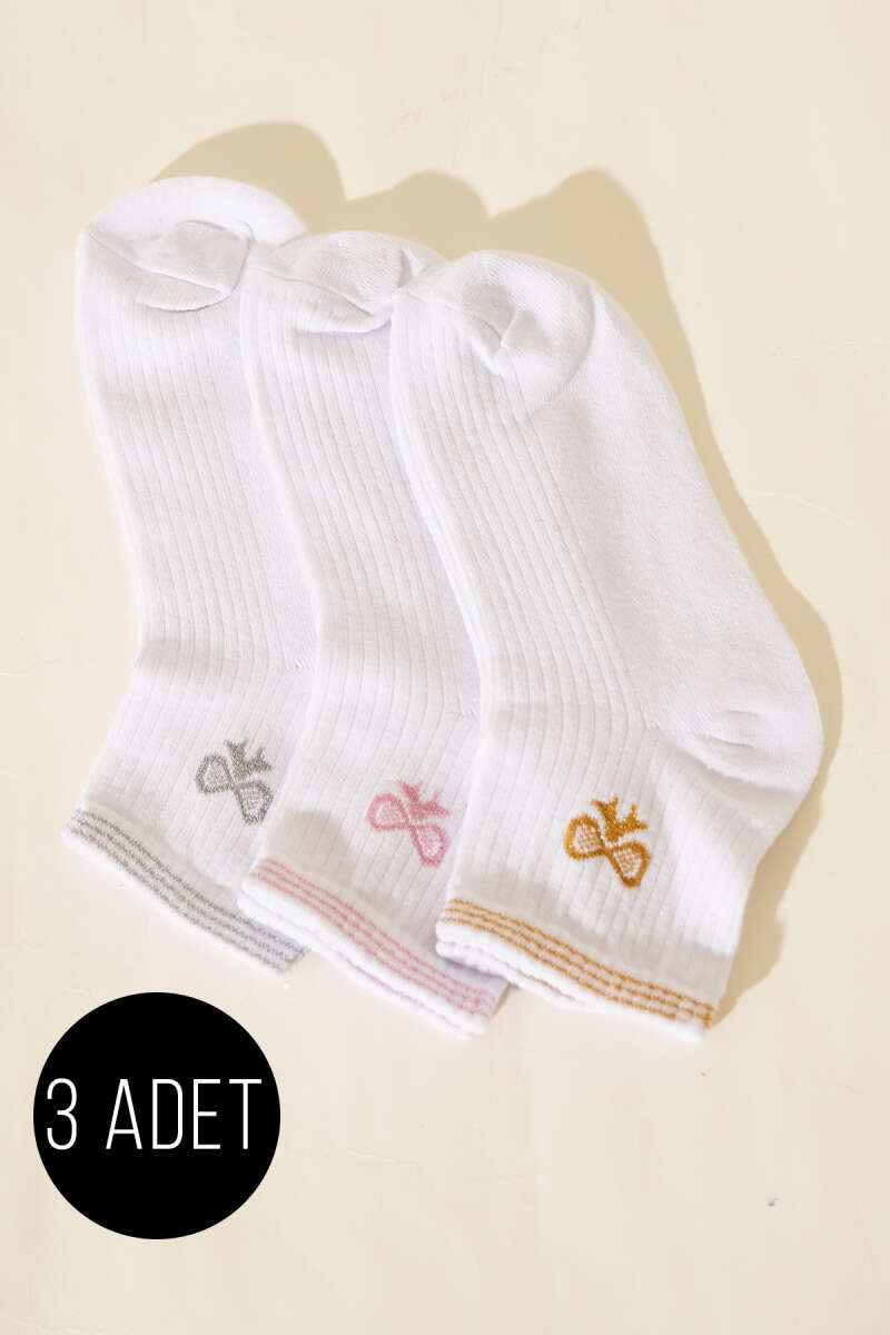 Kadın 3'lü Nakış Detaylı Kısa Konç Çorap Asorti 11