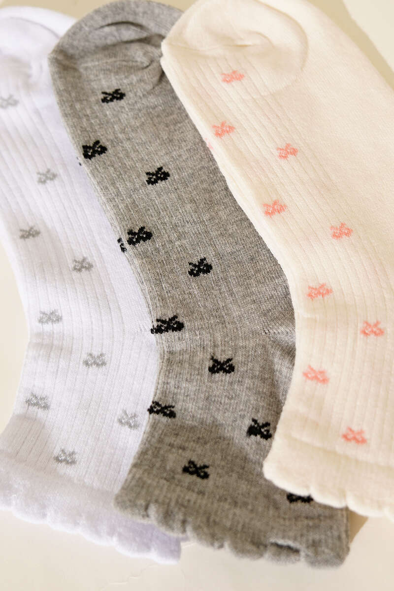 Kadın 3'lü Nakış Detaylı Kısa Konç Çorap Asorti 4