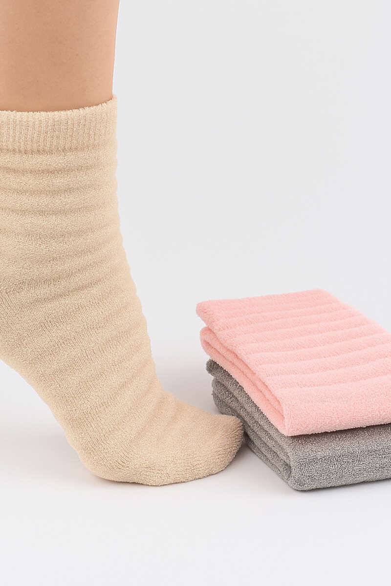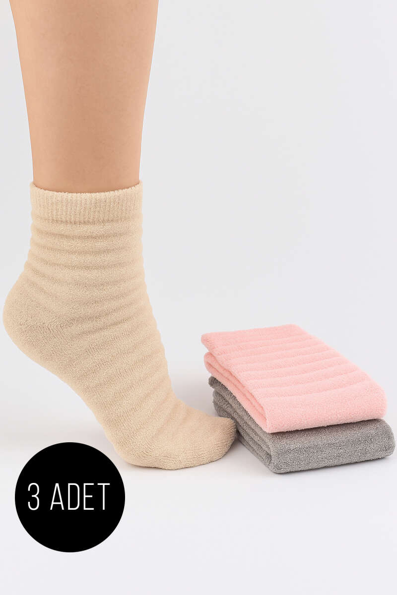 Kadın 3'lü Şeritli Havlu Patik Çorap Asorti 2