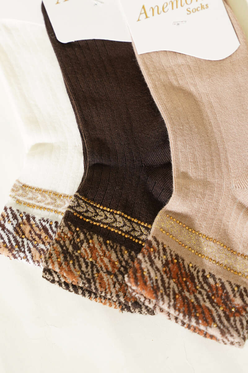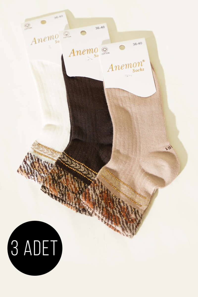 Kadın 3'lü Taş Detaylı Kısa Konç Çorap Asorti 11