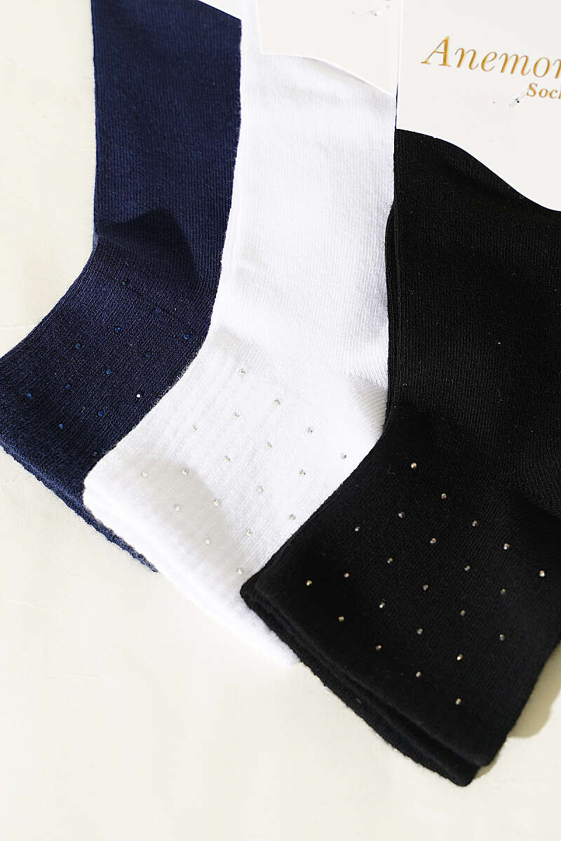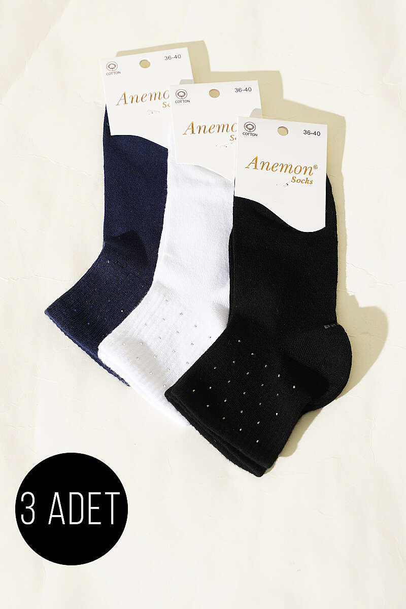 Kadın 3'lü Taş Detaylı Kısa Konç Çorap Asorti 19