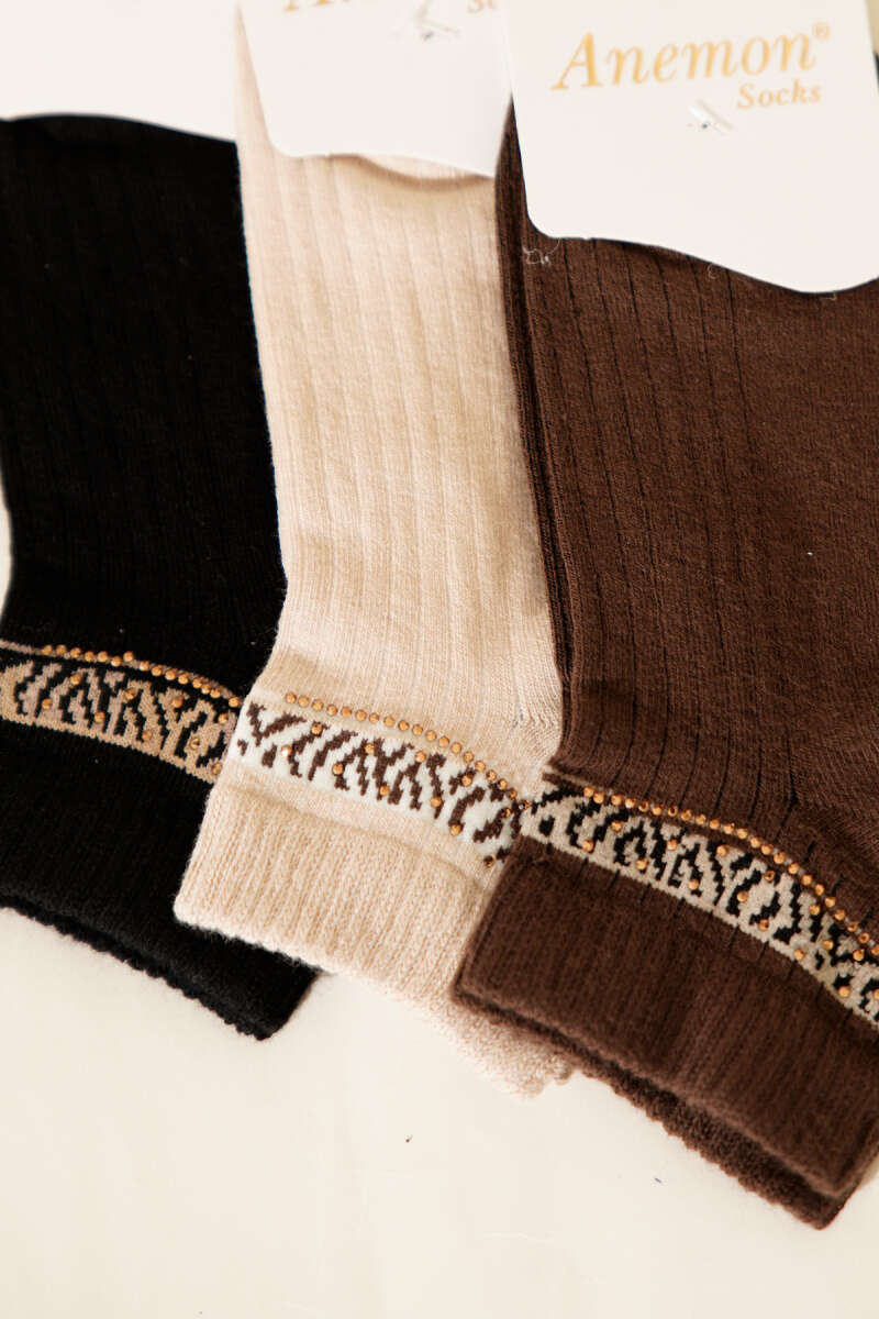 Kadın 3'lü Taş Detaylı Kısa Konç Çorap Asorti 2