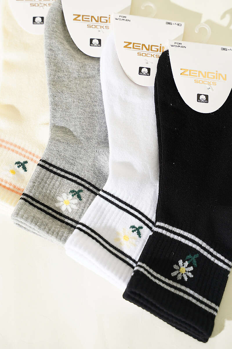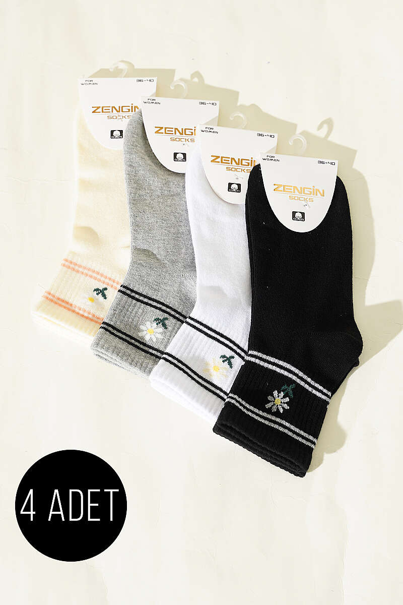 Kadın 4'lü Desenli Konç Çorap Asorti 3