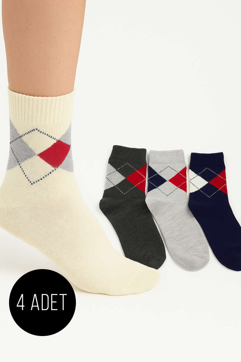 Kadın 4'lü Ekose Havlu Soket Çorap Asorti 1