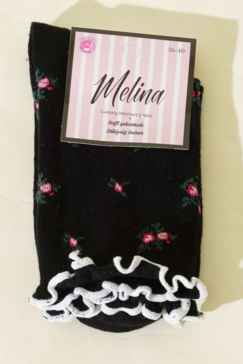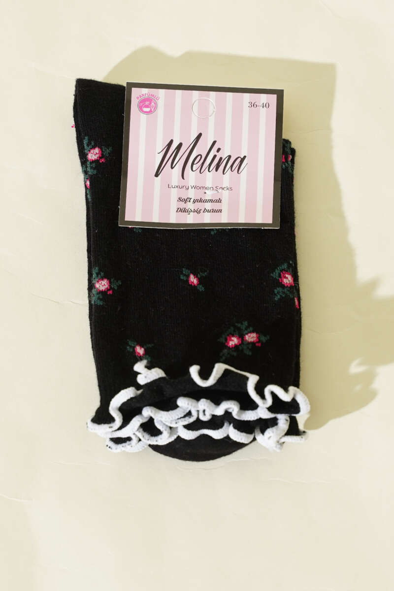 Kadın Çiçekli Fırfırlı Soket Çorap Siyah