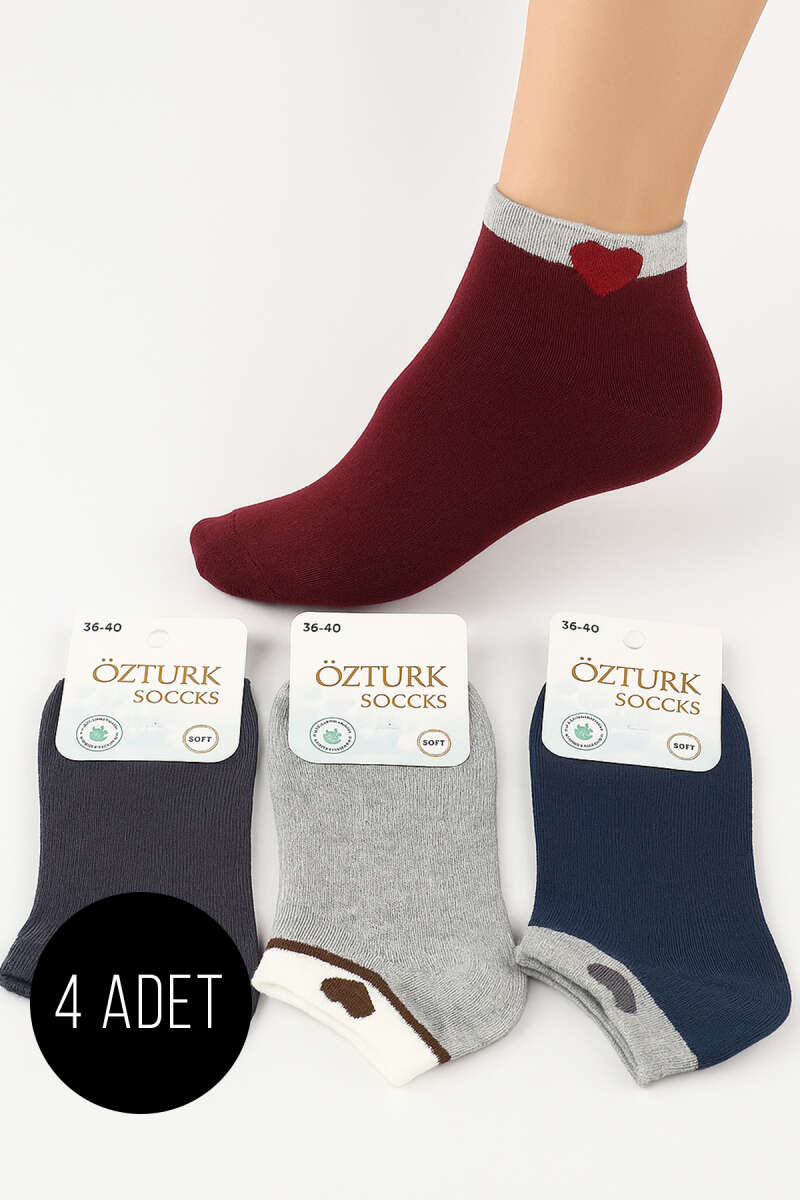 Kadın Desenli 4'lü Havlu Patik Çorap Asorti 3