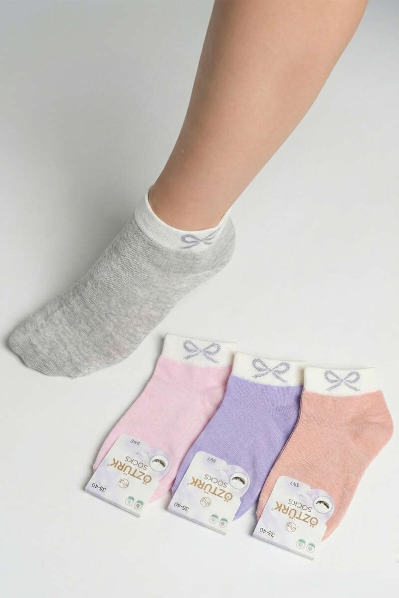 Kadın Desenli 4'lü Havlu Patik Çorap Asorti 5