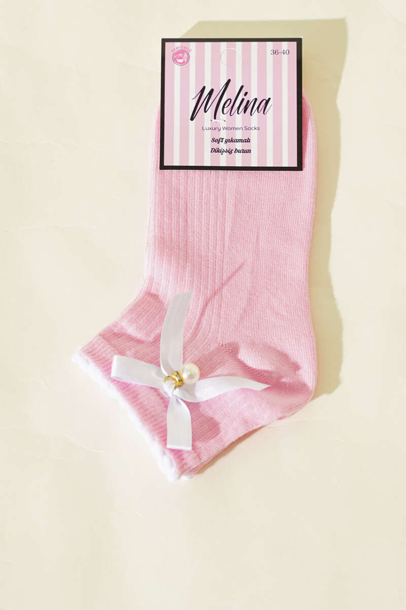 Kadın Fiyonklu İncili Soket Çorap Pembe