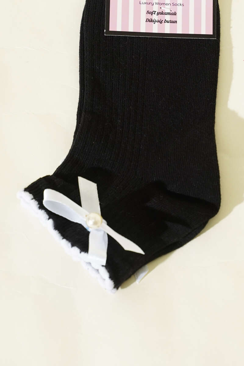 Kadın Fiyonklu İncili Soket Çorap Siyah